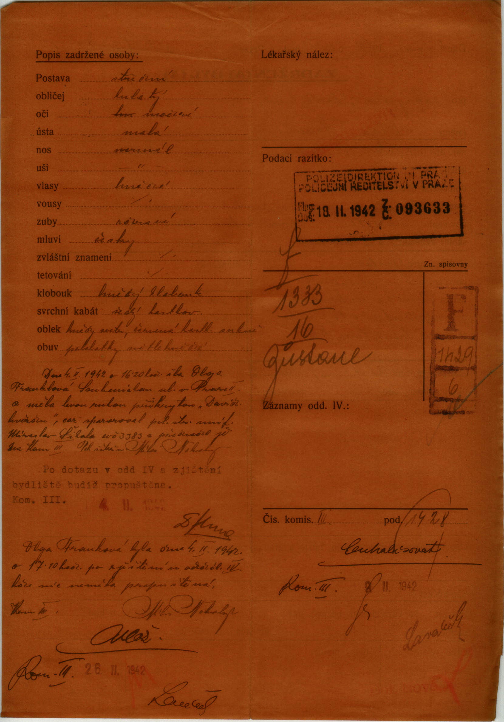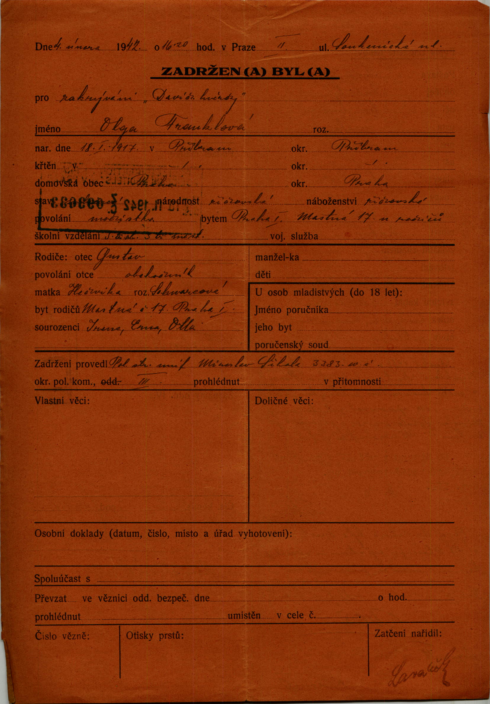 National archives Prague > Police Directorate Prague > 1941-1950 > F > Franklová Olga
