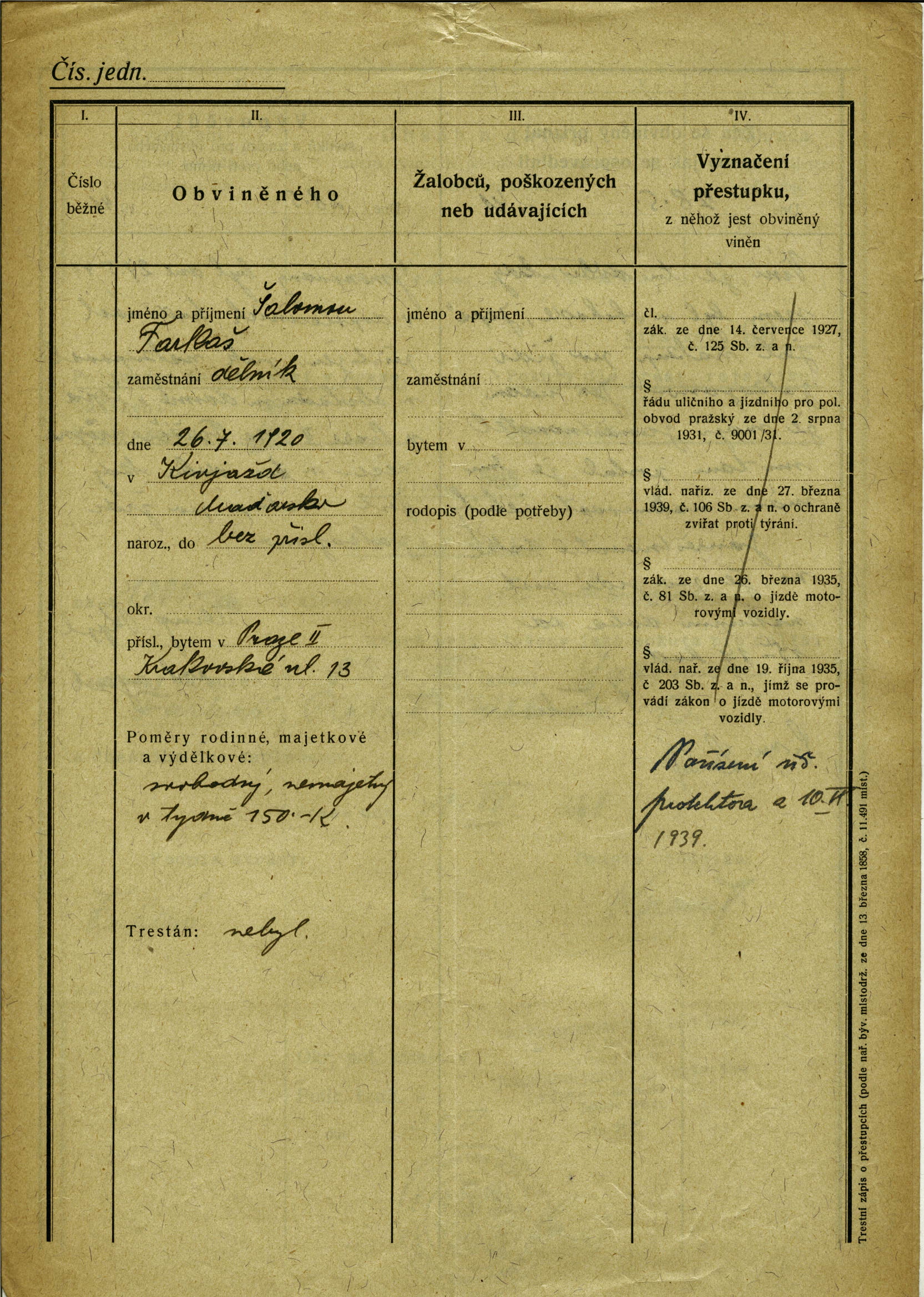 National archives Prague > Police Directorate Prague > 1941-1950 > F > Farkaš Šalamoun