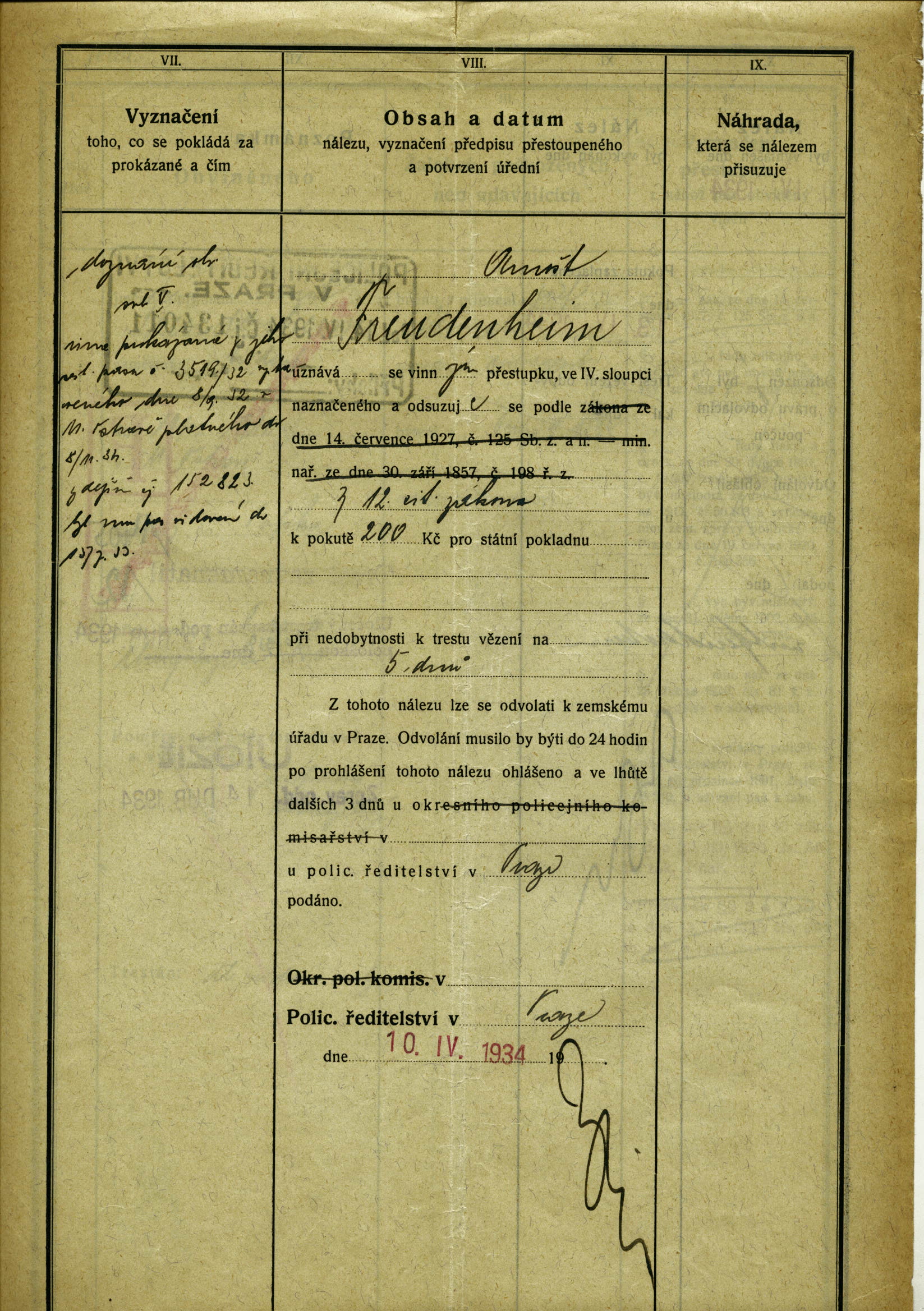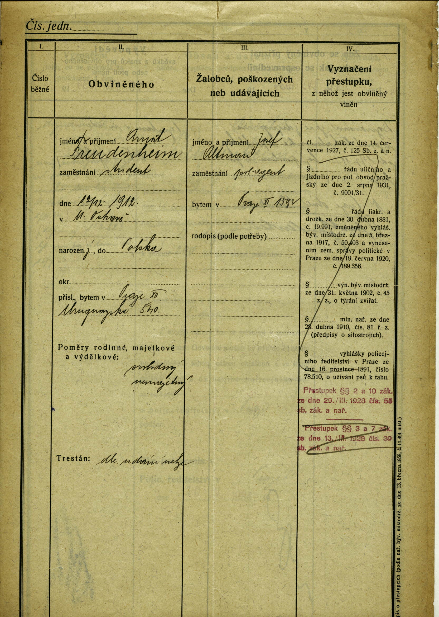 National archives Prague > Police Directorate Prague > 1941-1950 > F > Freudenheim Arnošt