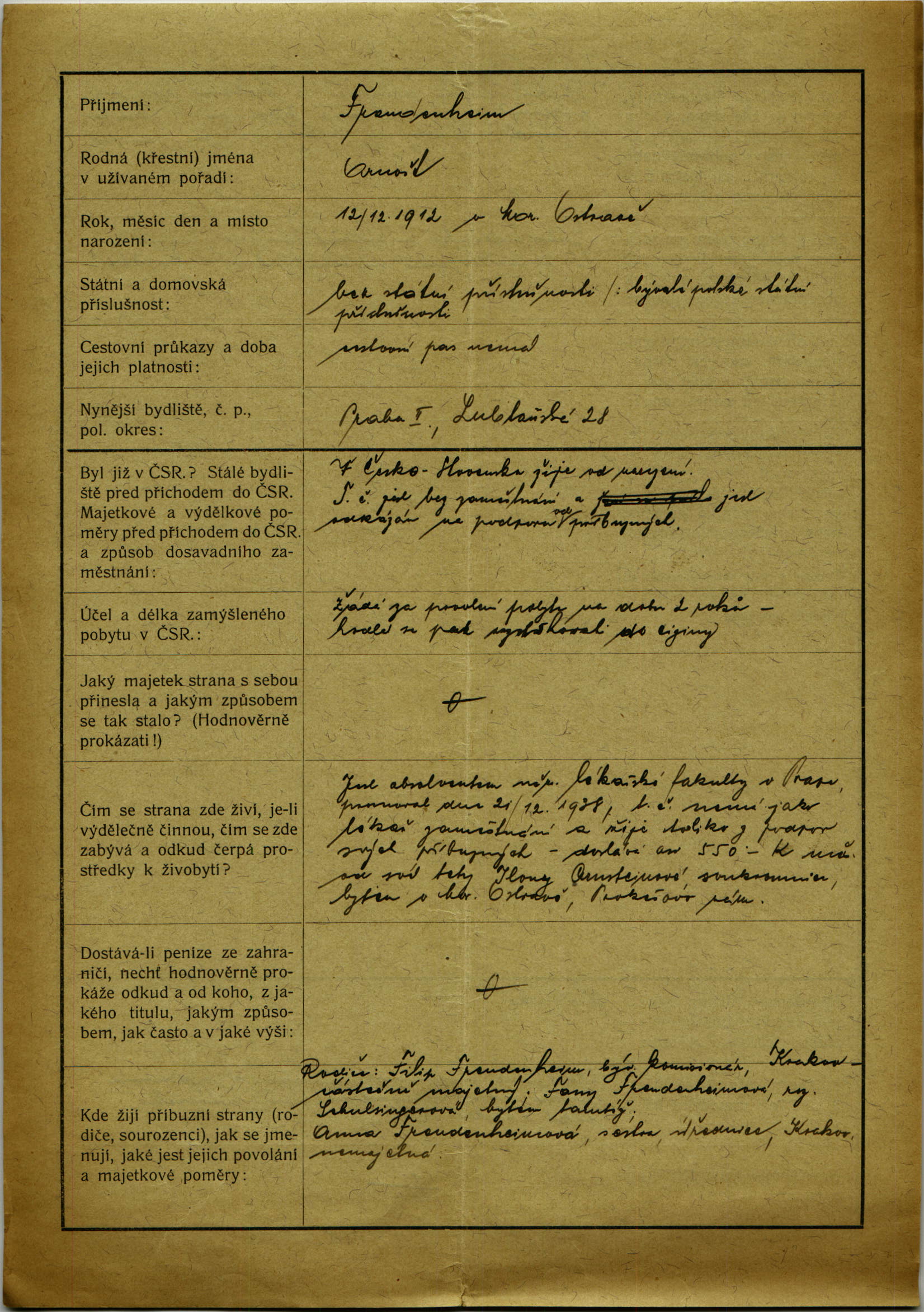 National archives Prague > Police Directorate Prague > 1941-1950 > F > Freudenheim Arnošt