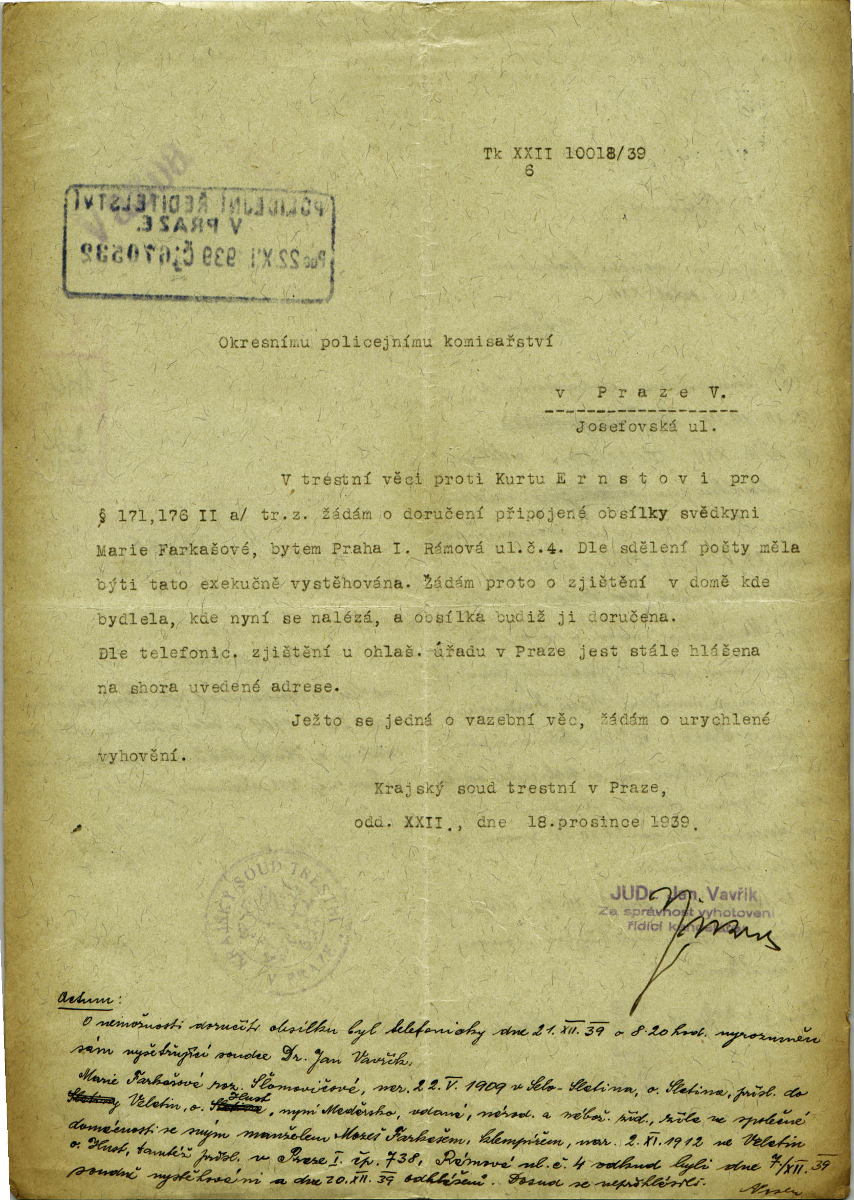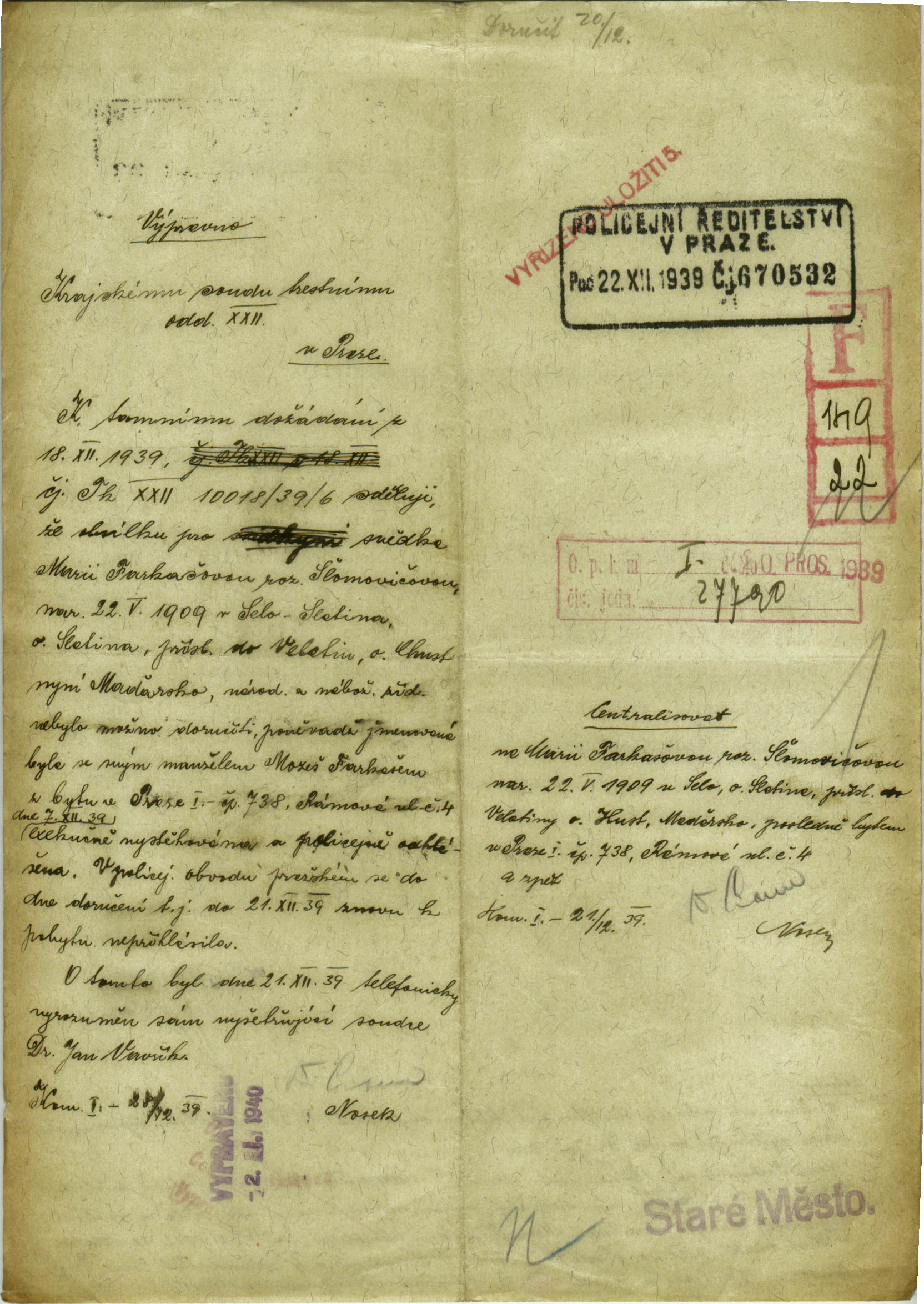 National archives Prague > Police Directorate Prague > 1941-1950 > F > Farkašová Marie