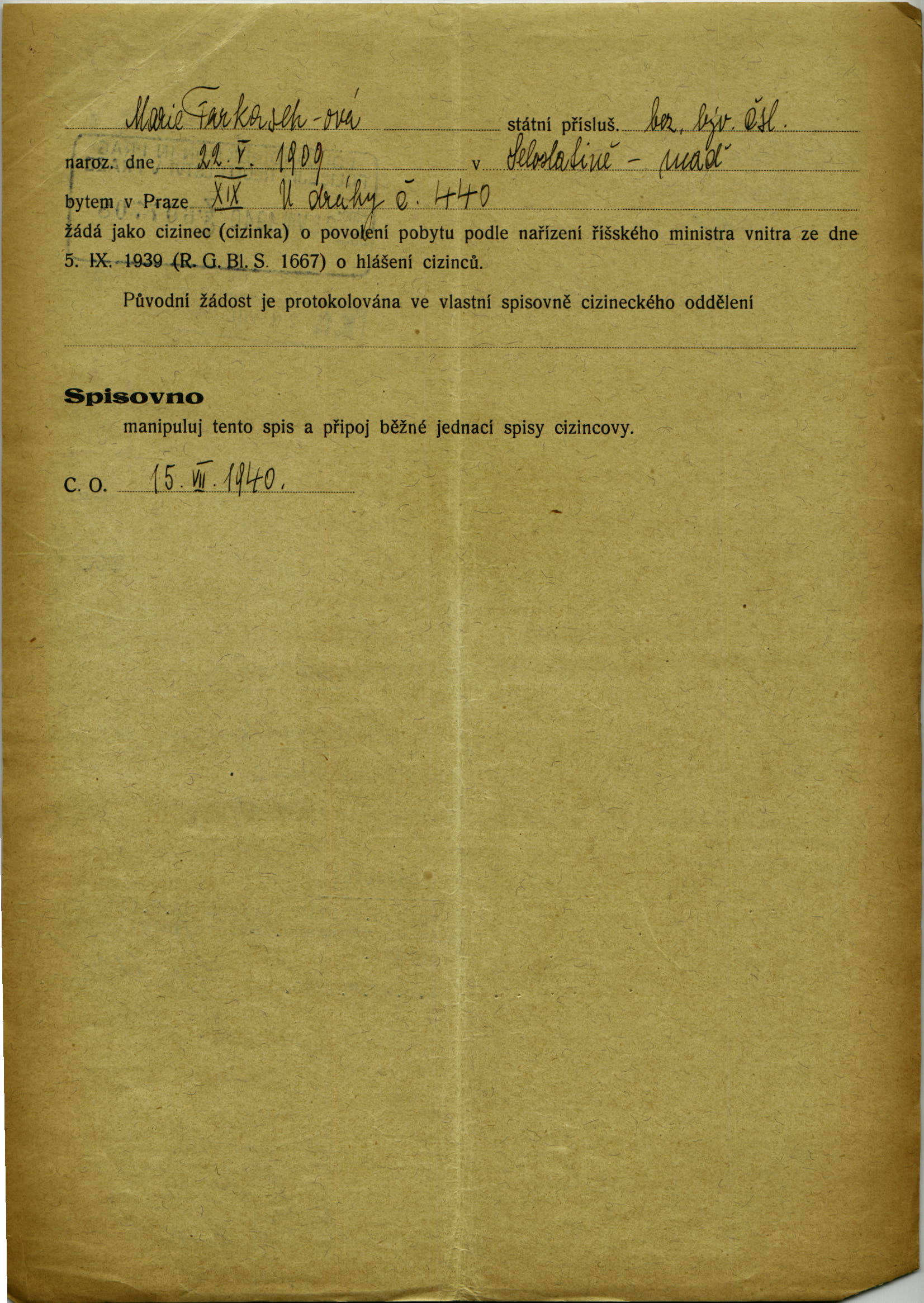 National archives Prague > Police Directorate Prague > 1941-1950 > F > Farkašová Marie