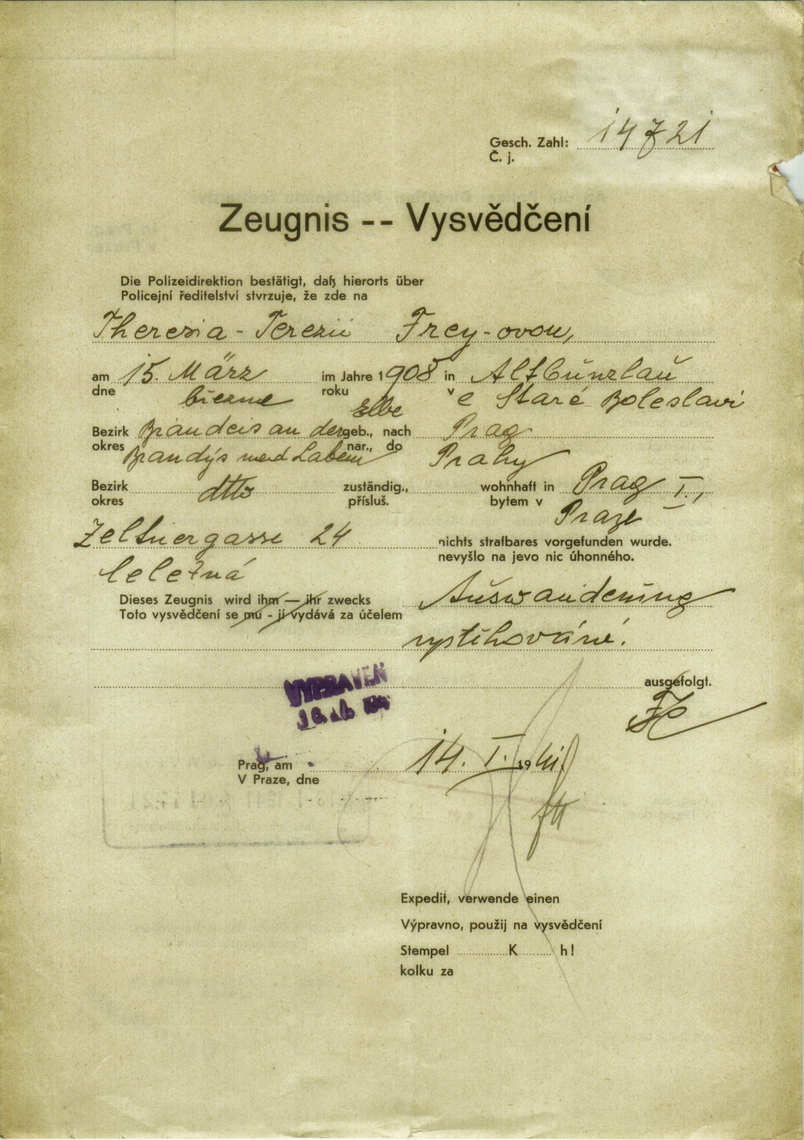 National archives Prague > Police Directorate Prague > 1941-1950 > F > Freiová Tereza