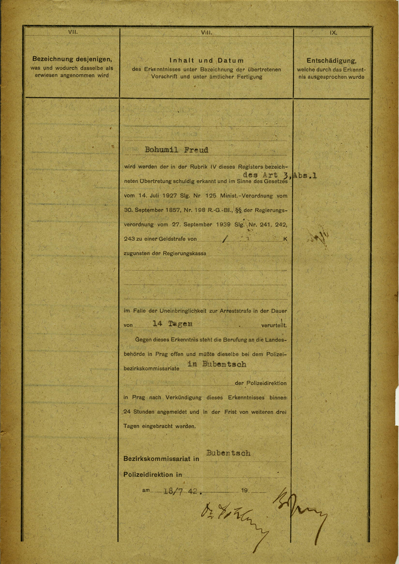 National archives Prague > Police Directorate Prague > 1941-1950 > F > Freud Bohumil