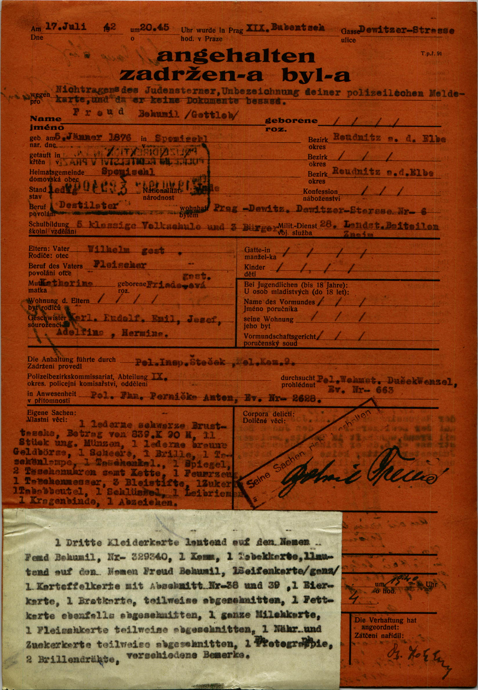 National archives Prague > Police Directorate Prague > 1941-1950 > F > Freud Bohumil