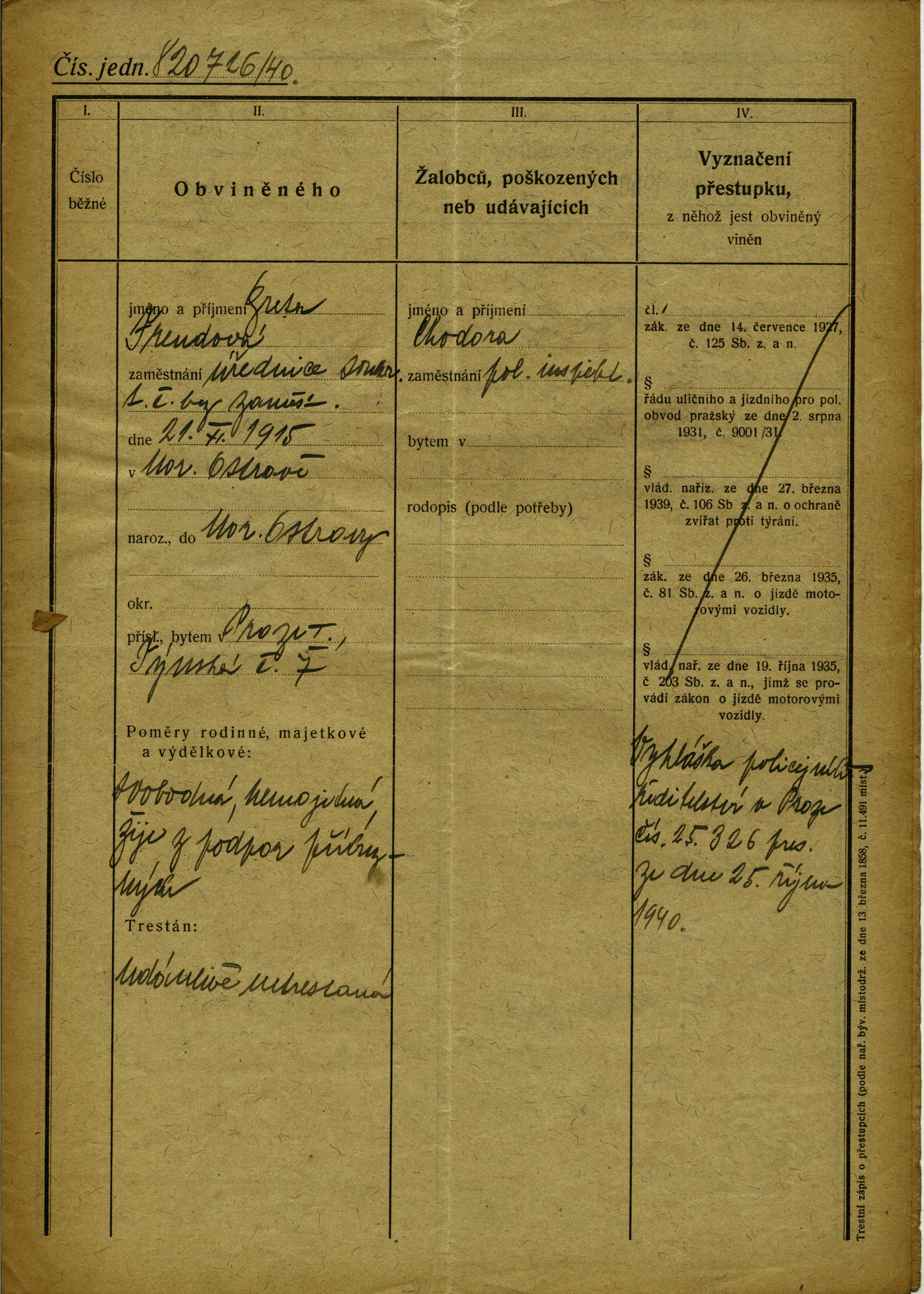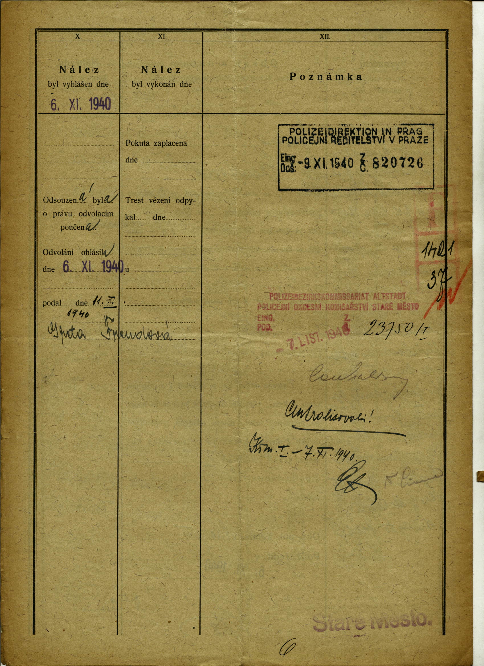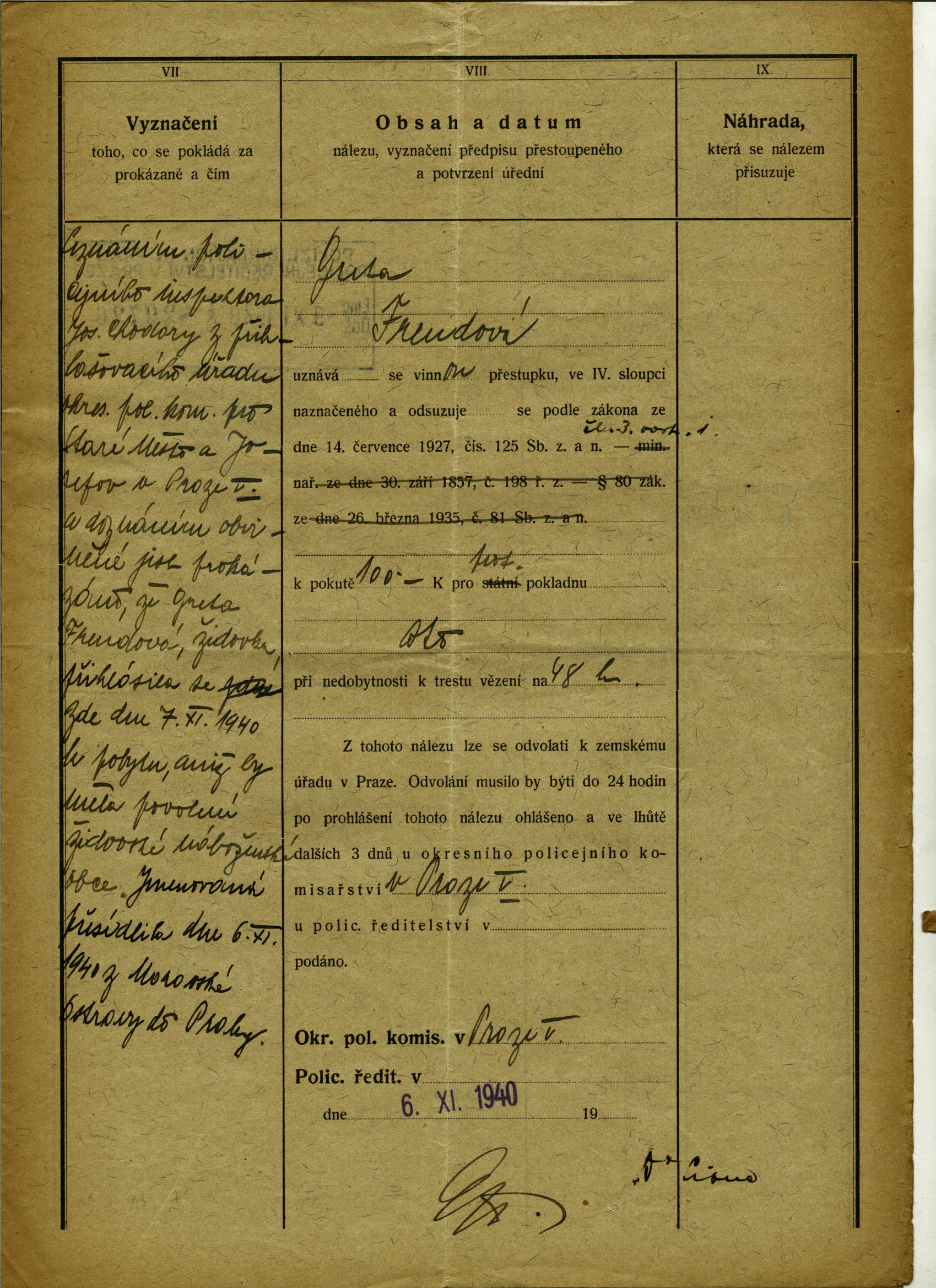 National archives Prague > Police Directorate Prague > 1941-1950 > F > Freudová Markéta
