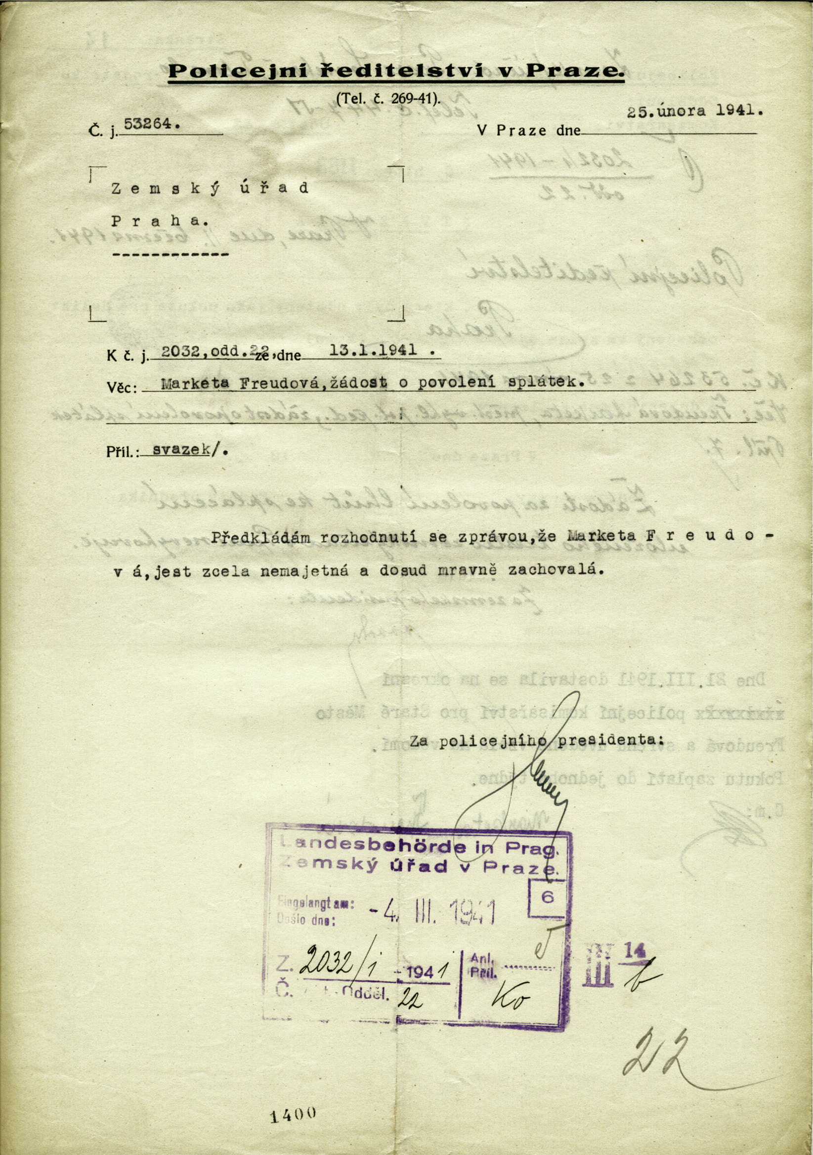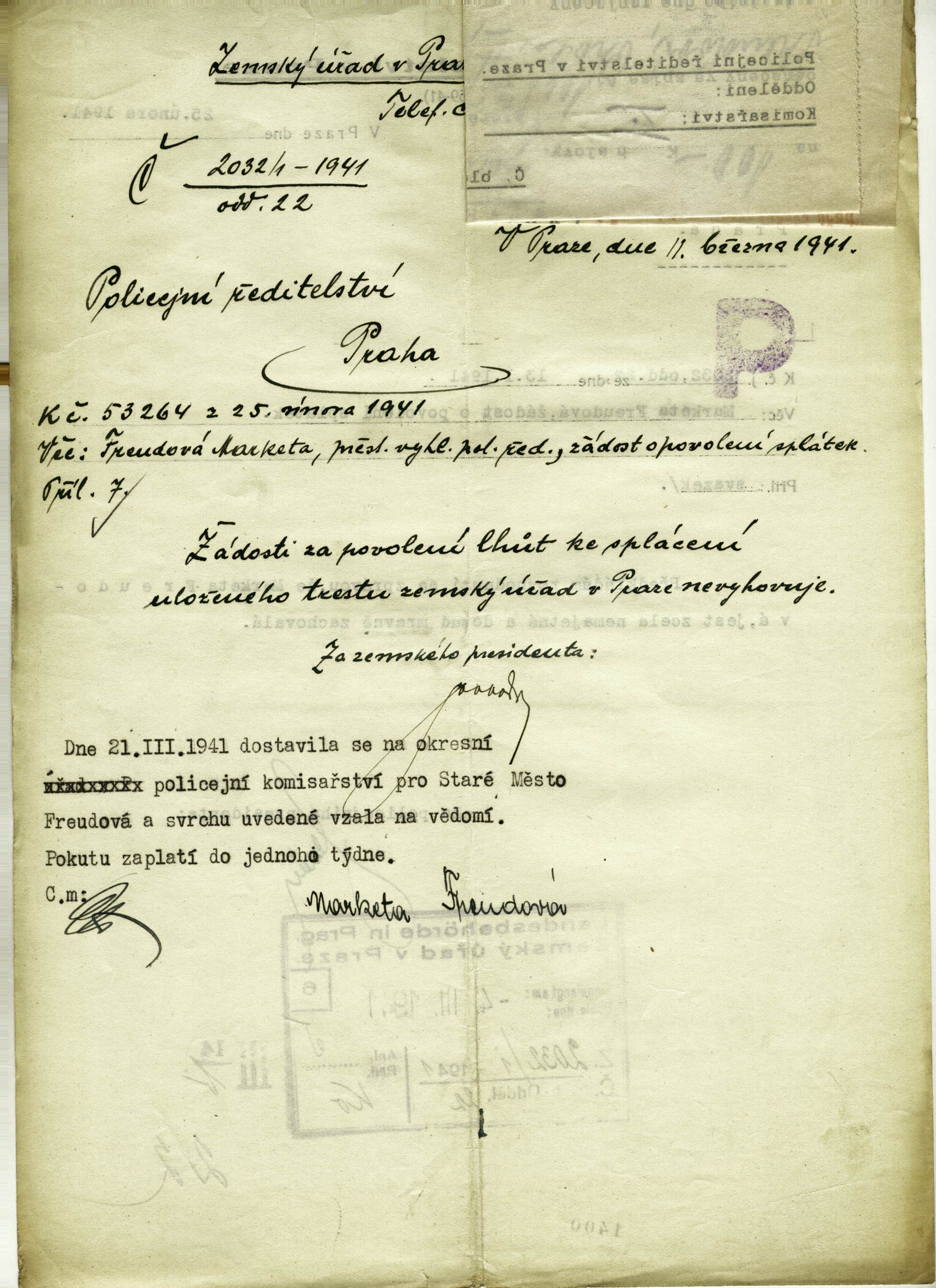 National archives Prague > Police Directorate Prague > 1941-1950 > F > Freudová Markéta