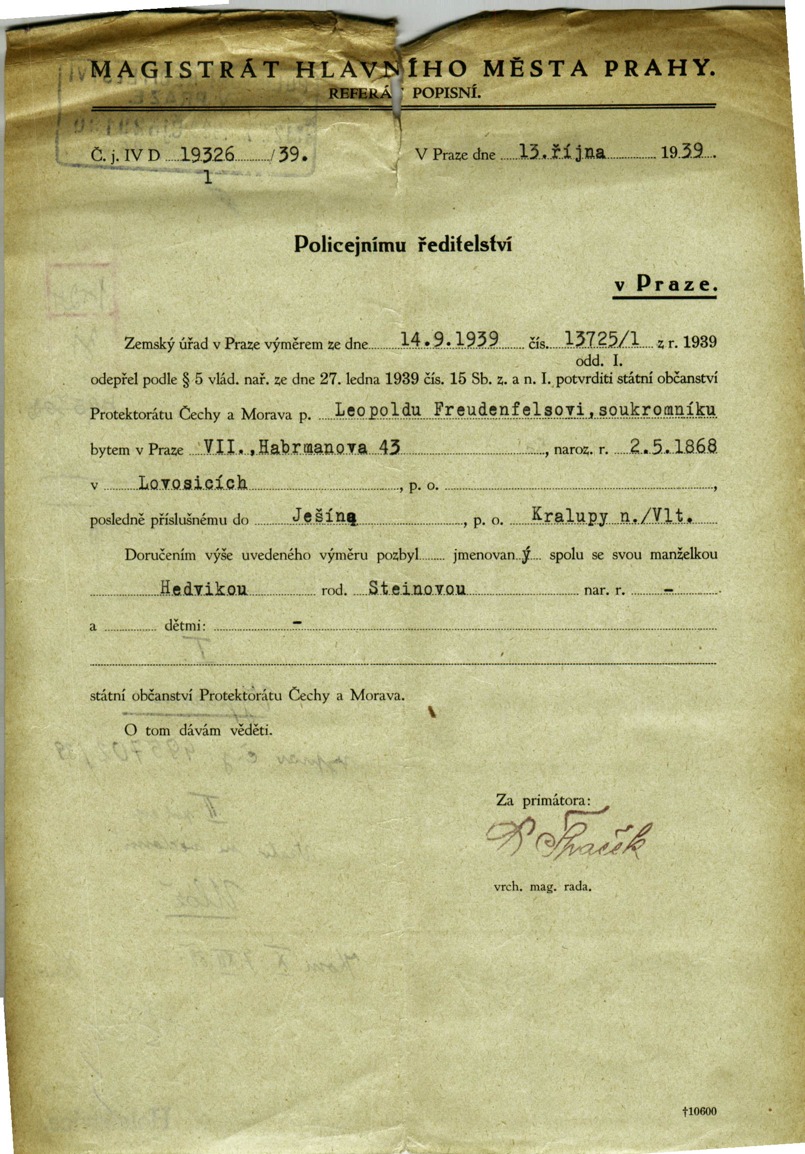 National archives Prague > Police Directorate Prague > 1941-1950 > F > Freudenfels Leopold