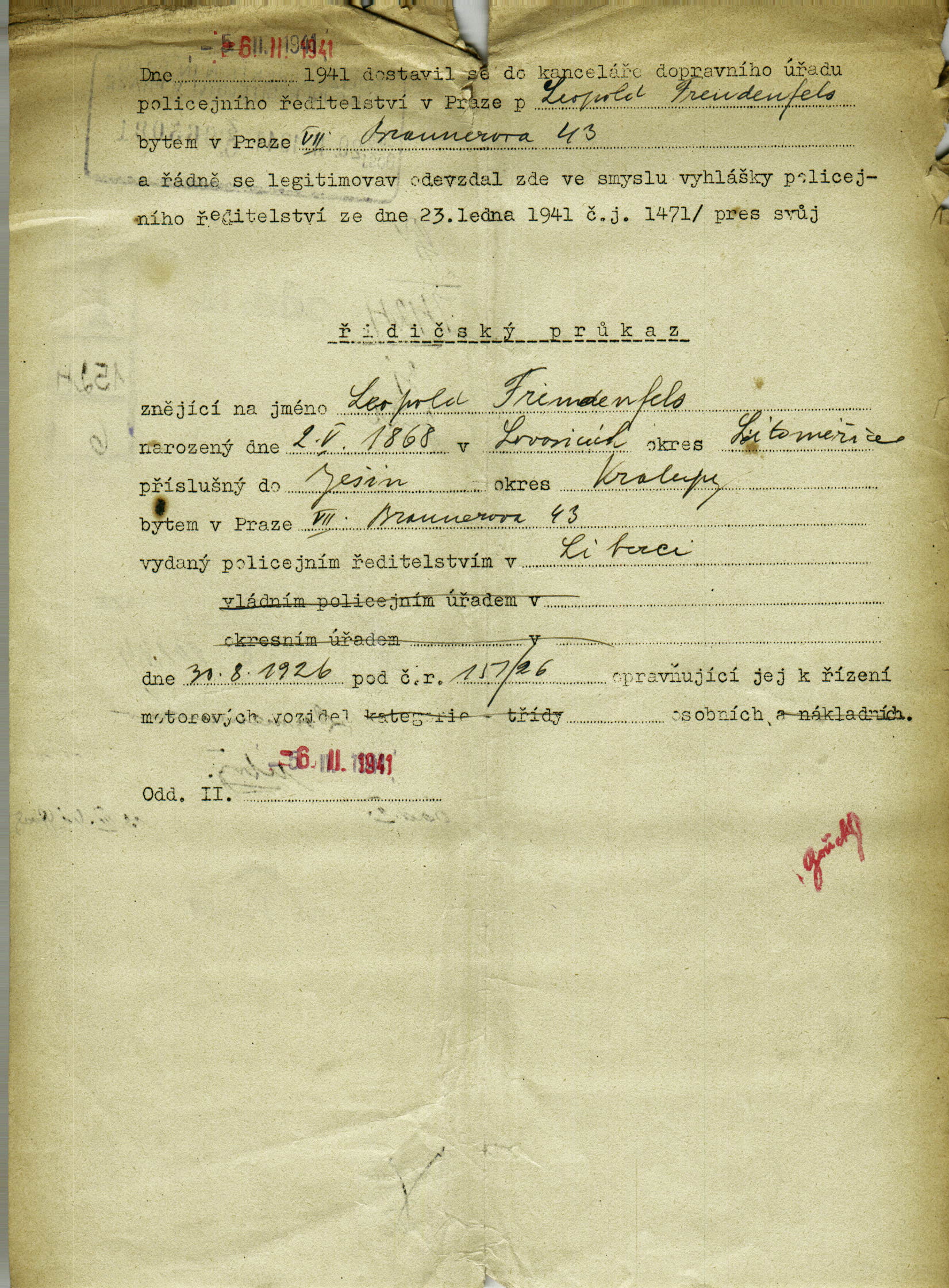 National archives Prague > Police Directorate Prague > 1941-1950 > F > Freudenfels Leopold