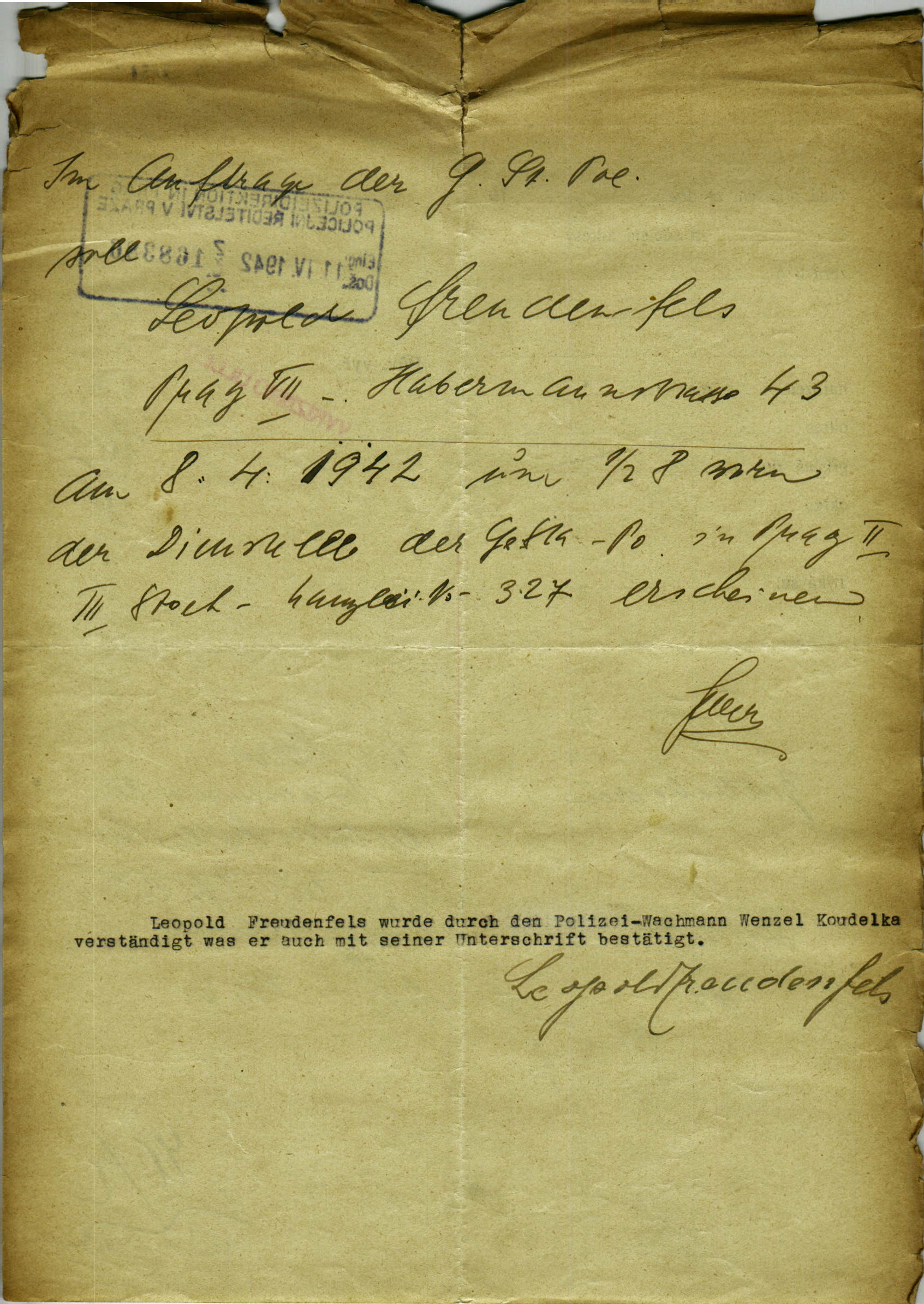 National archives Prague > Police Directorate Prague > 1941-1950 > F > Freudenfels Leopold