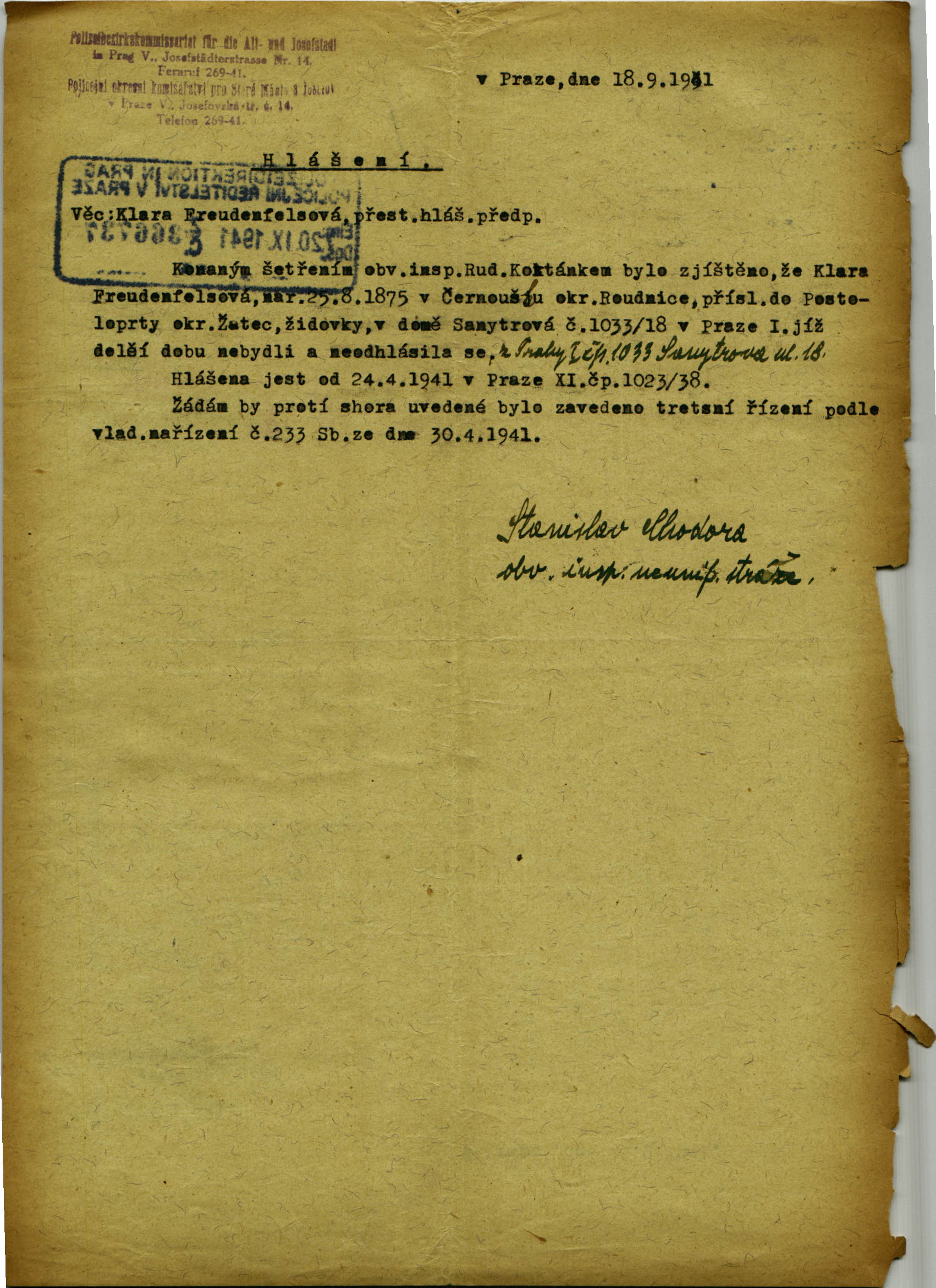 National archives Prague > Police Directorate Prague > 1941-1950 > F > Freudenfelsová Klára