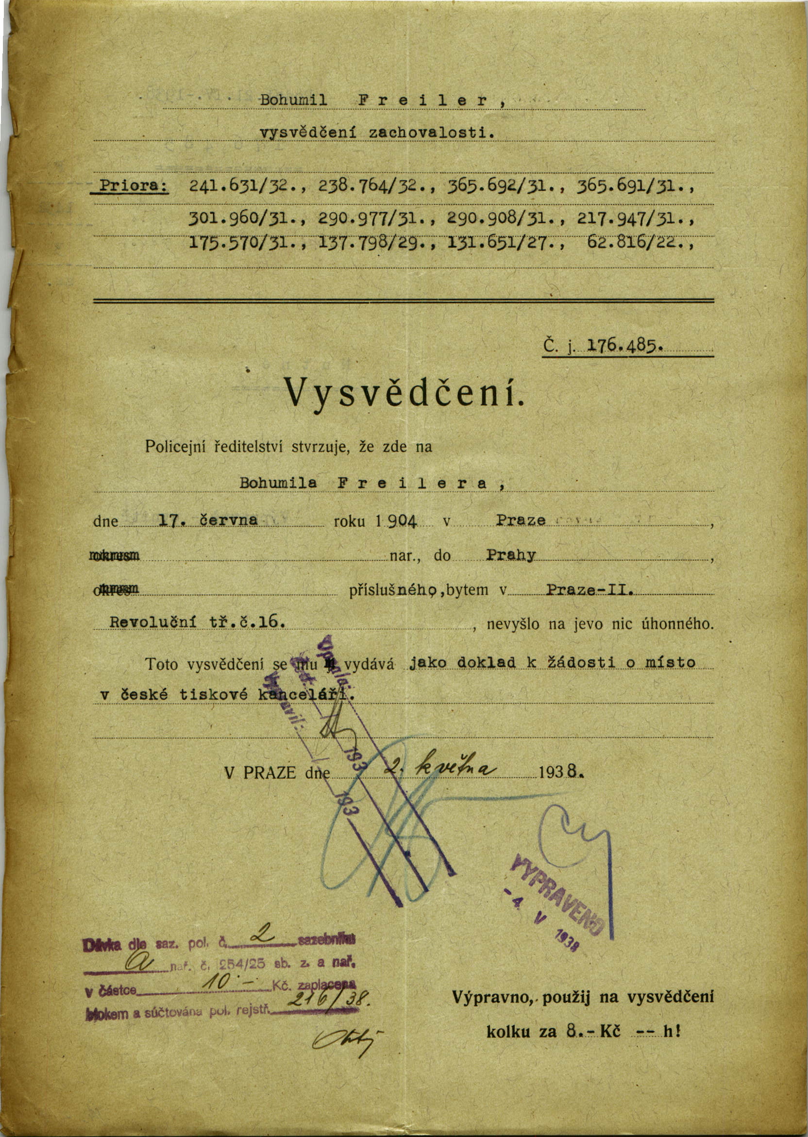 National archives Prague > Police Directorate Prague > 1941-1950 > F > Freiler Bohumil
