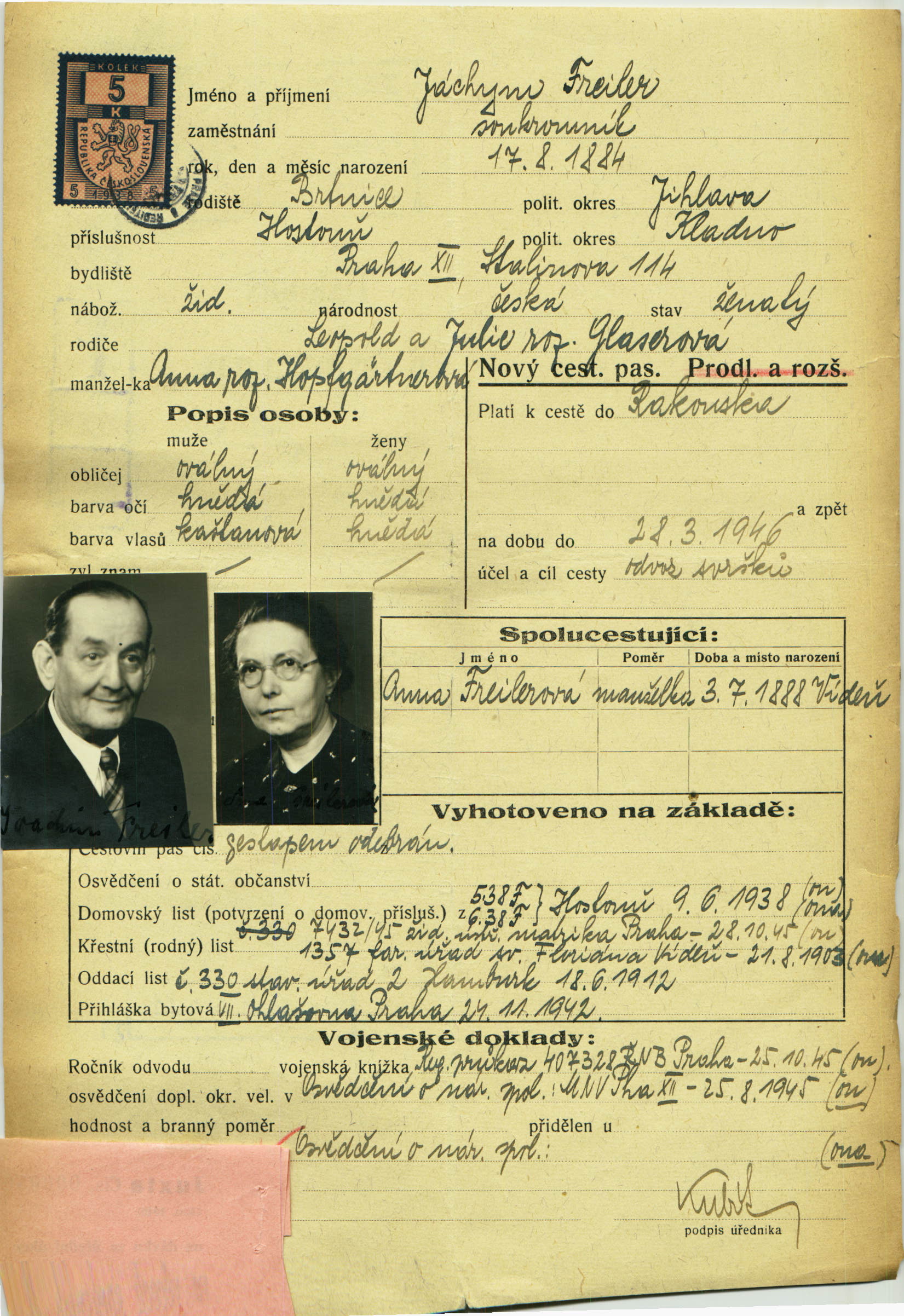 National archives Prague > Police Directorate Prague > 1941-1950 > F > Freiler Joachim