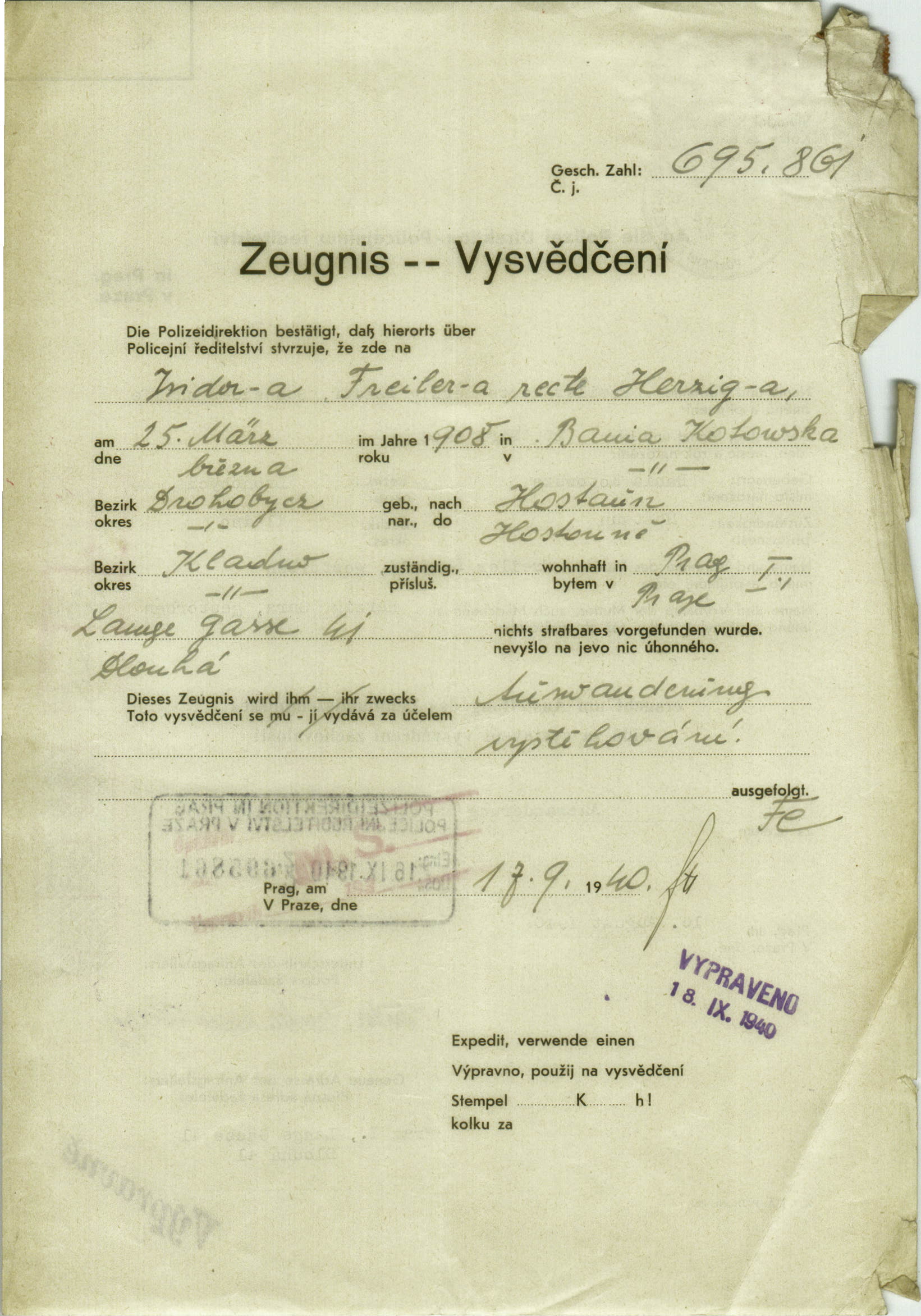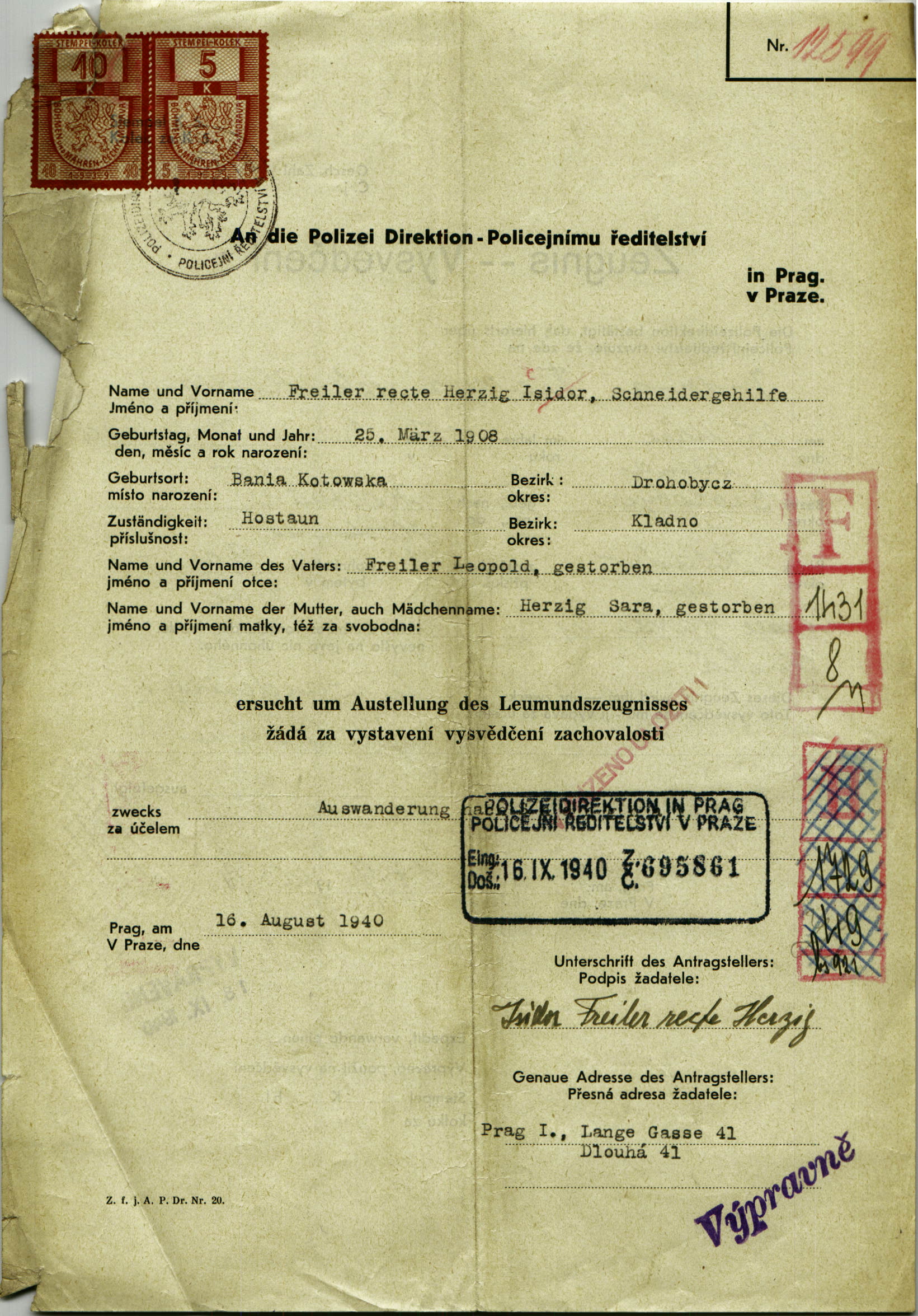 National archives Prague > Police Directorate Prague > 1941-1950 > F > Freiler Isidor