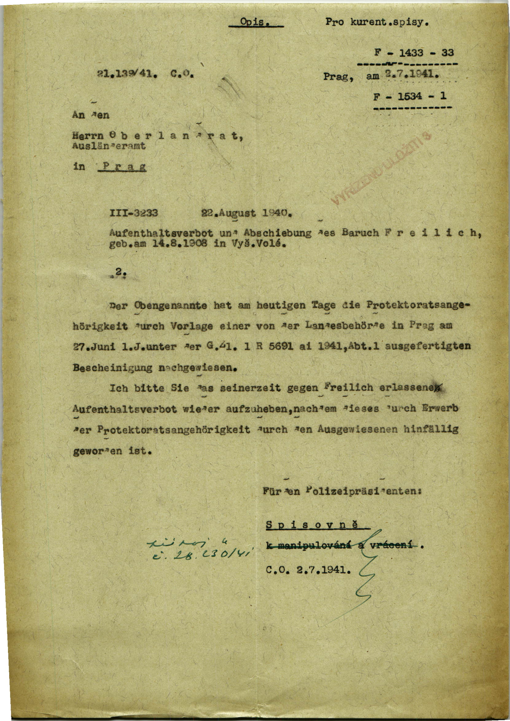 National archives Prague > Police Directorate Prague > 1941-1950 > F > Freilich Baruch