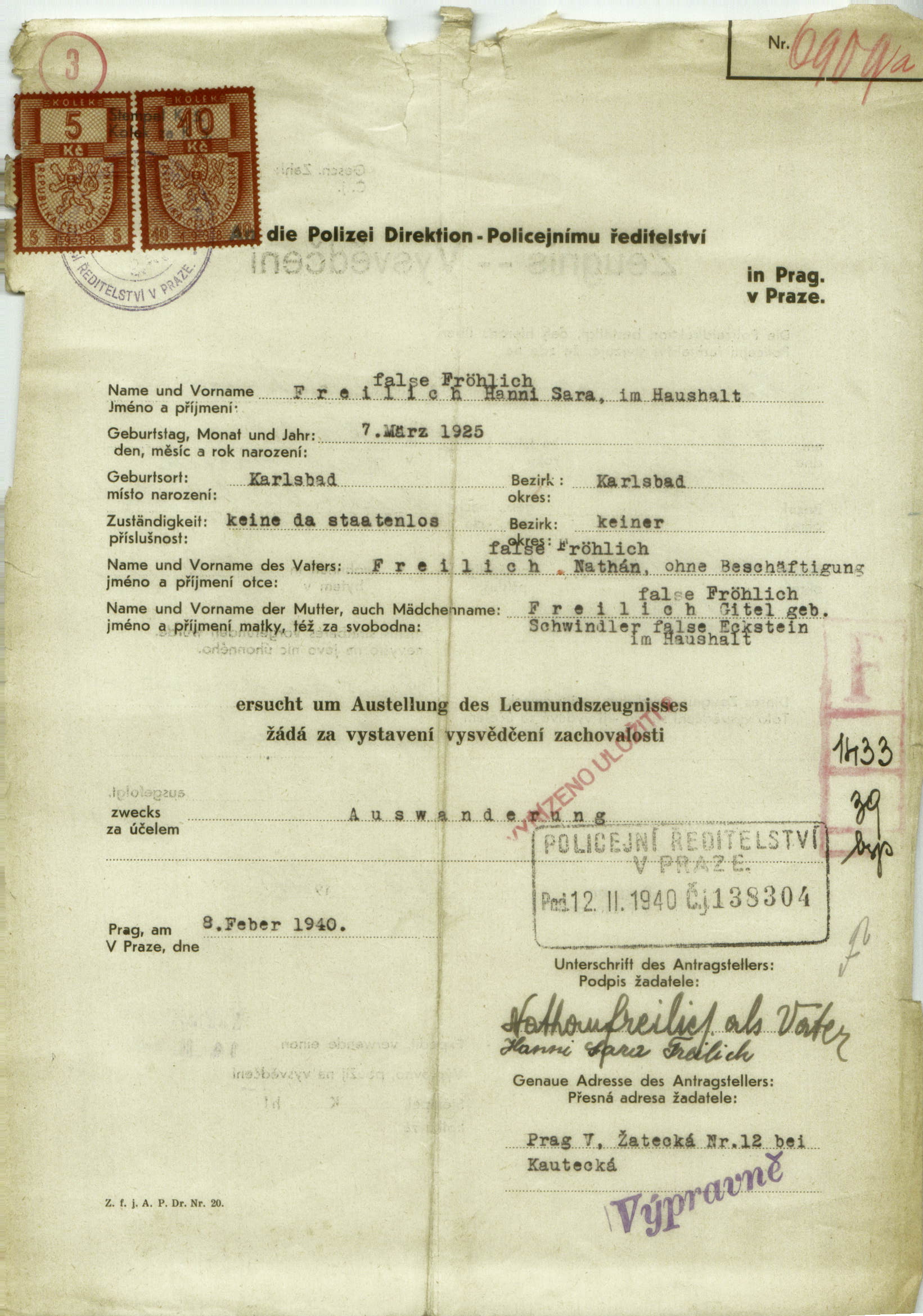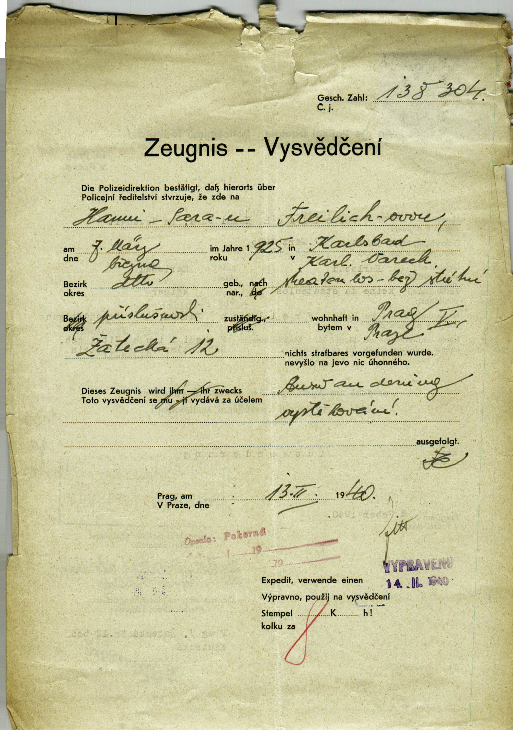 National archives Prague > Police Directorate Prague > 1941-1950 > F > Freilichová Hanni