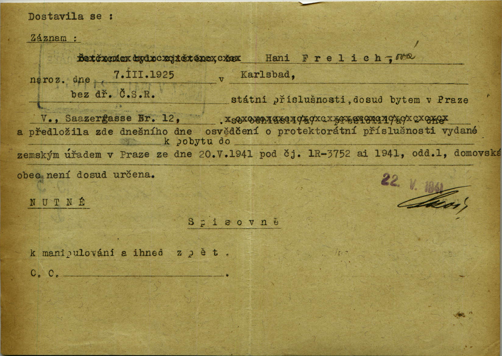 National archives Prague > Police Directorate Prague > 1941-1950 > F > Freilichová Hanni