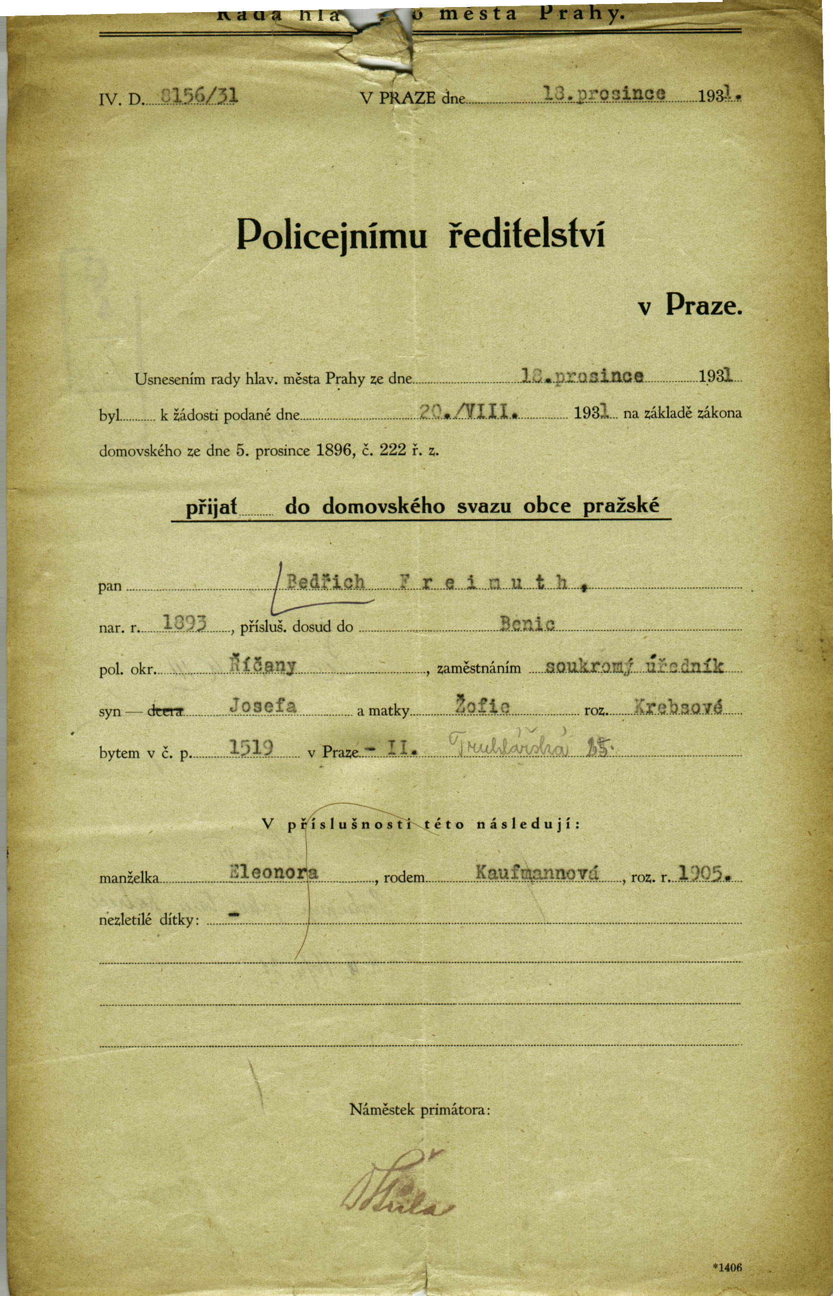 National archives Prague > Police Directorate Prague > 1941-1950 > F > Freimuth Bedřich