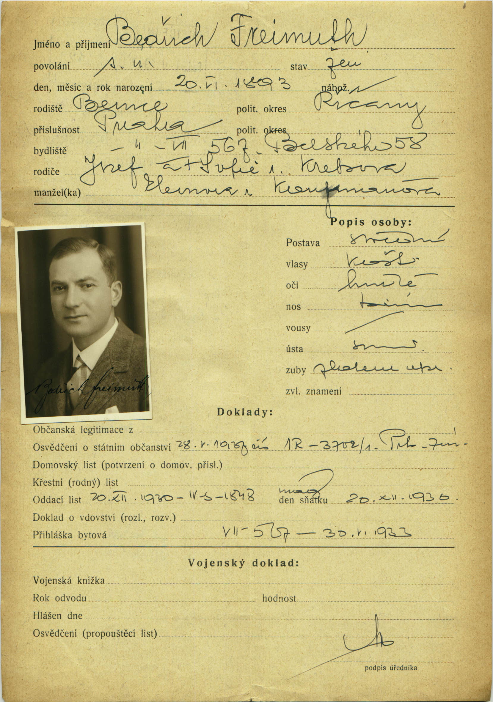 National archives Prague > Police Directorate Prague > 1941-1950 > F > Freimuth Bedřich