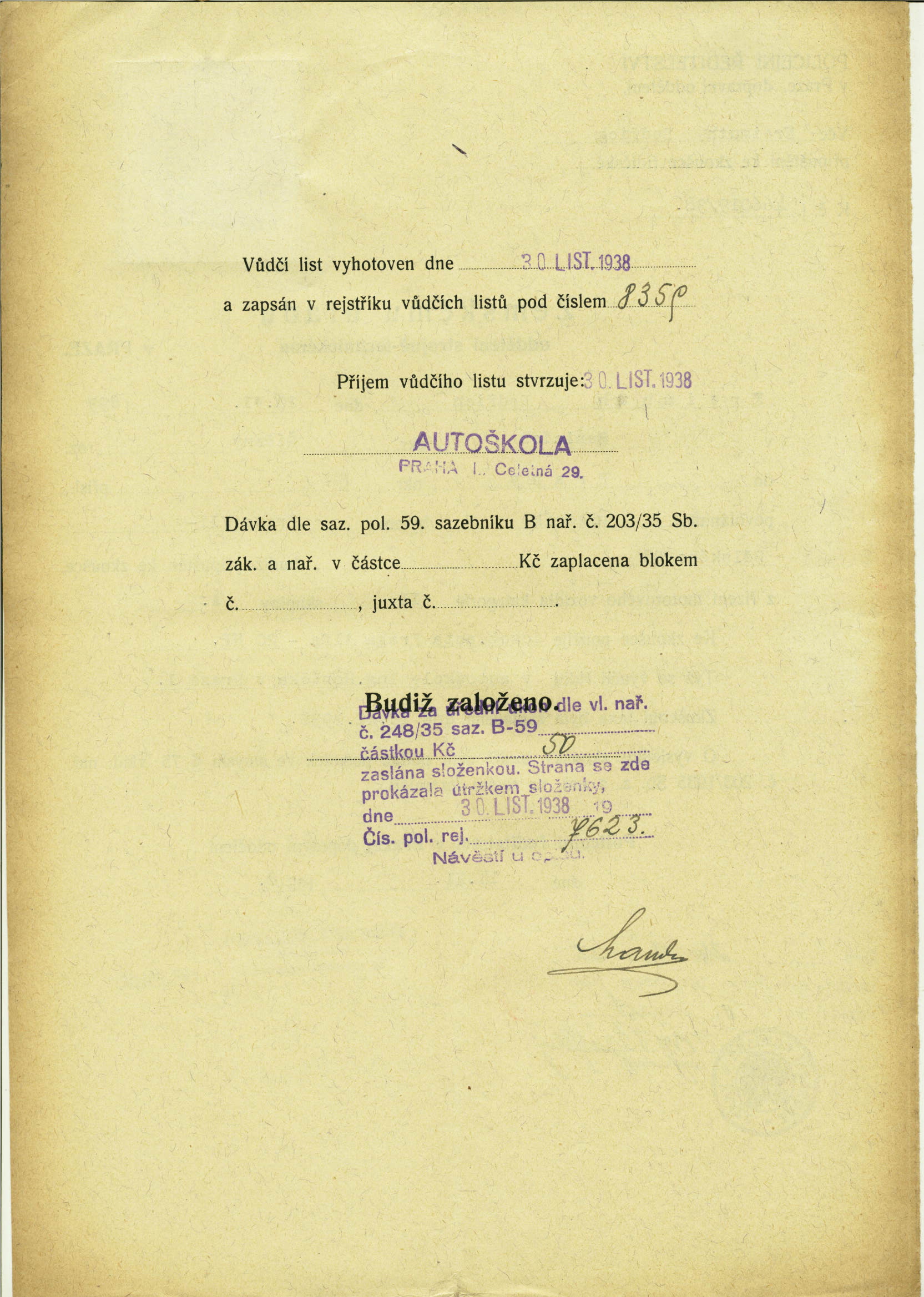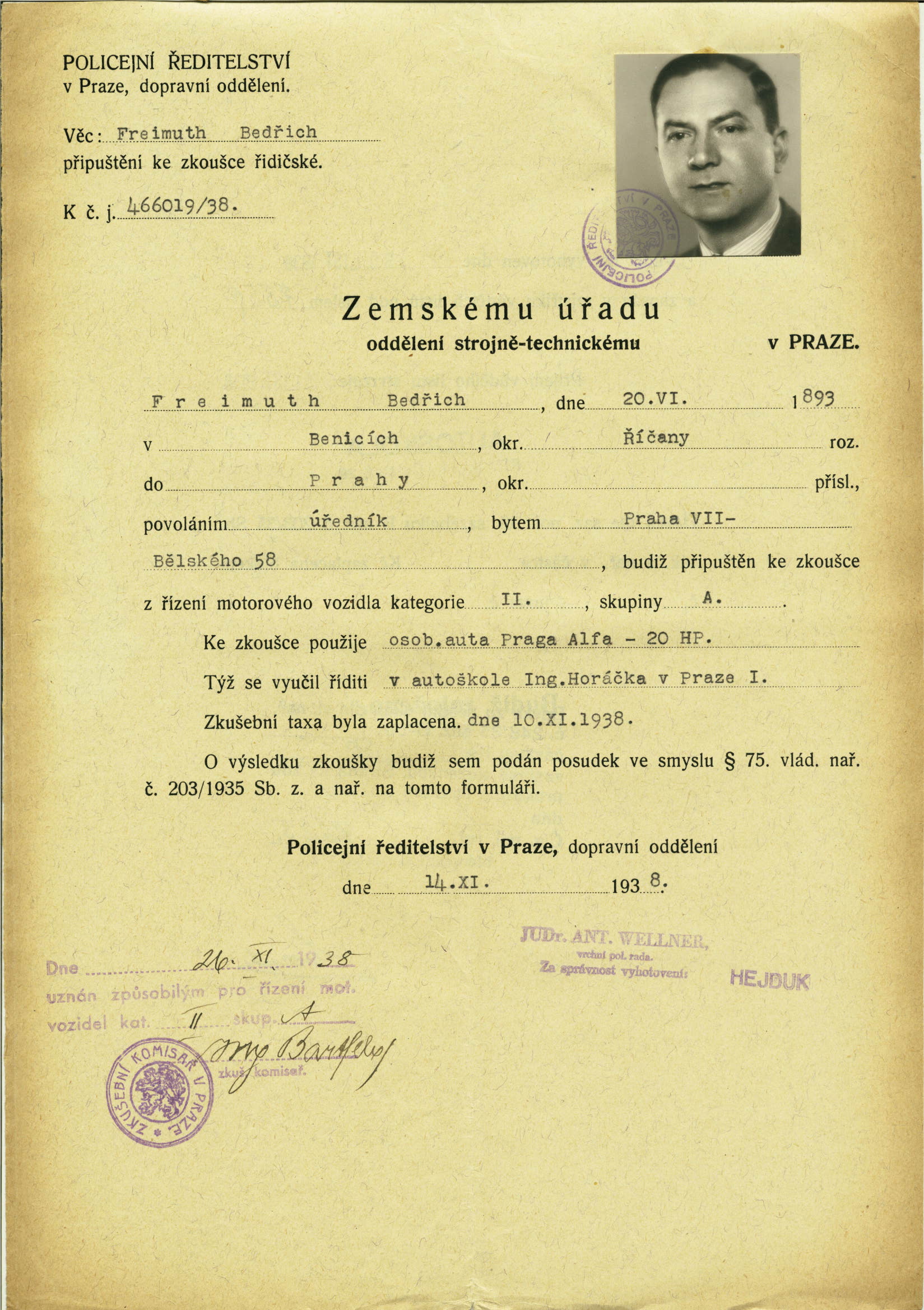 Freimuth Bedřich: Připuštění k řidičské zkoušce