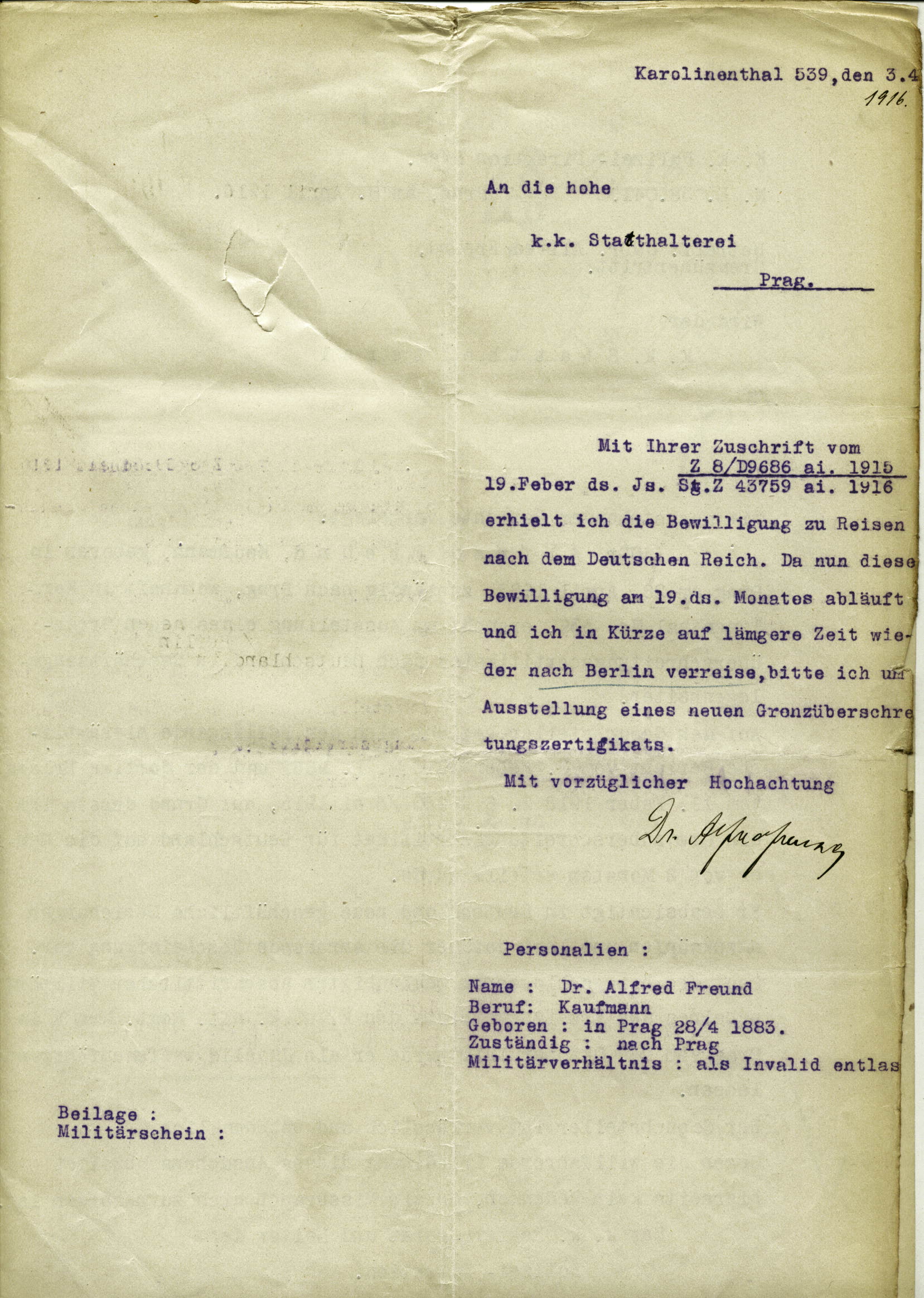Freund Alfred: Řízení ve věci udělení víza