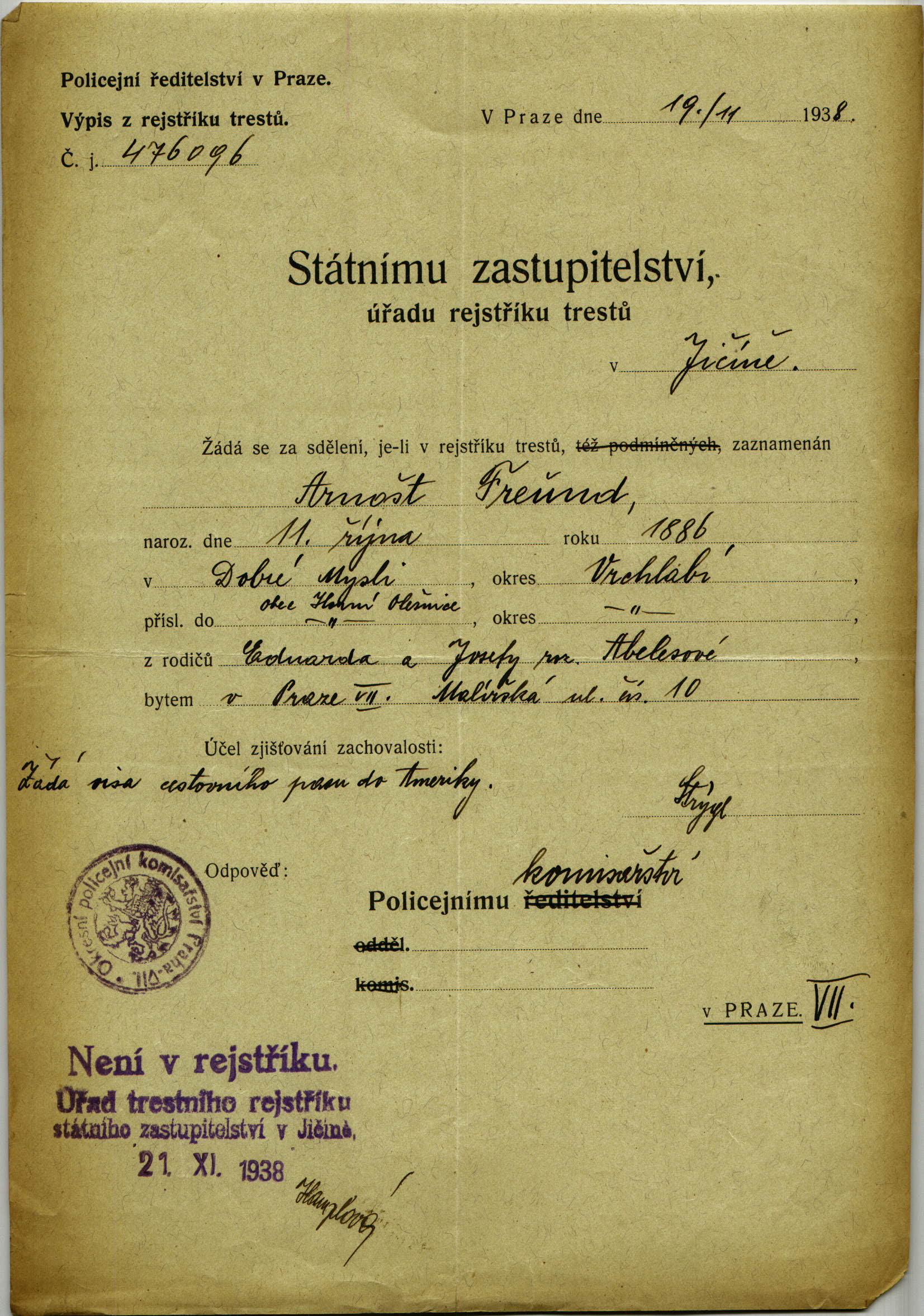 National archives Prague > Police Directorate Prague > 1941-1950 > F > Freund Arnošt