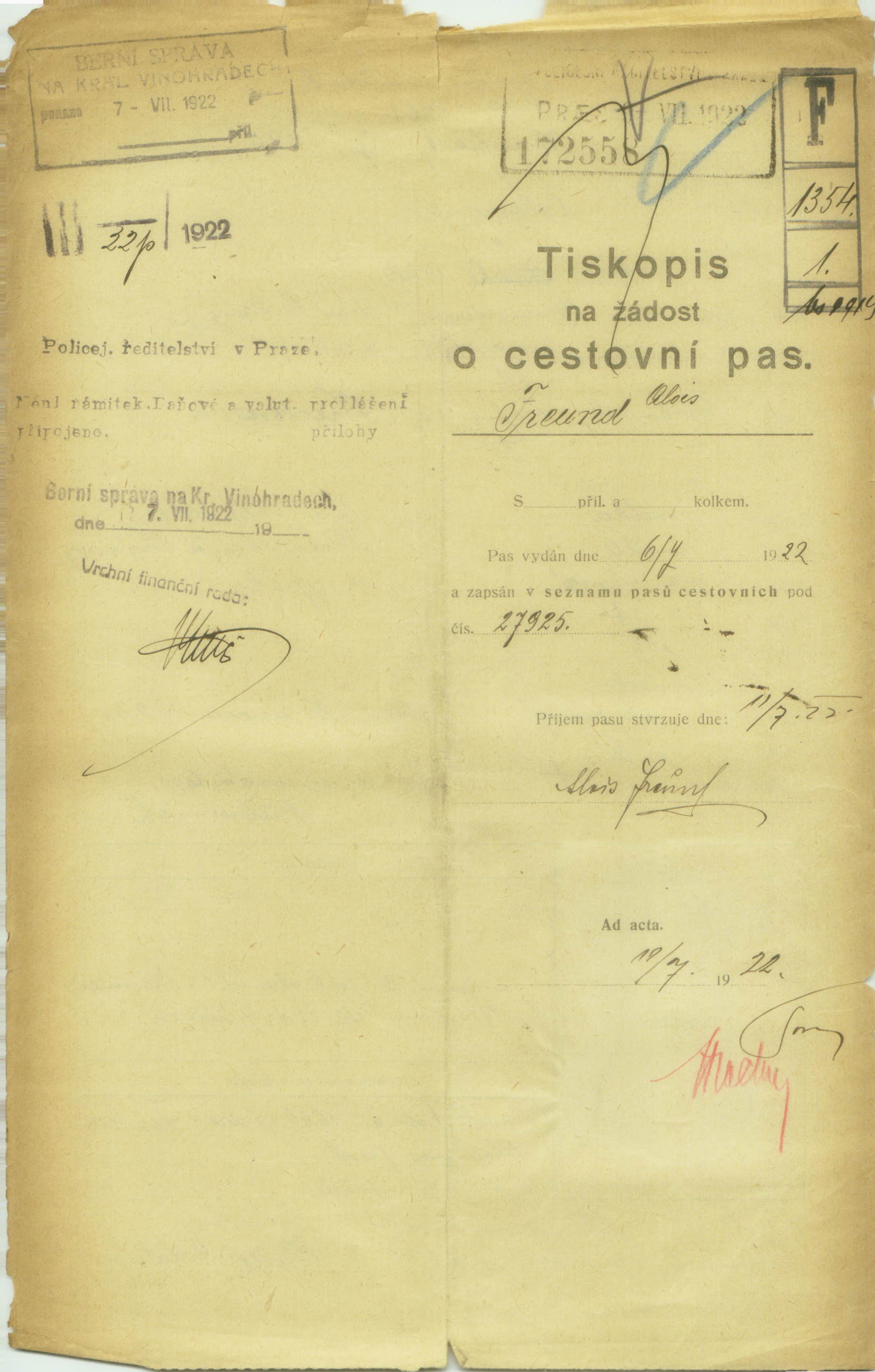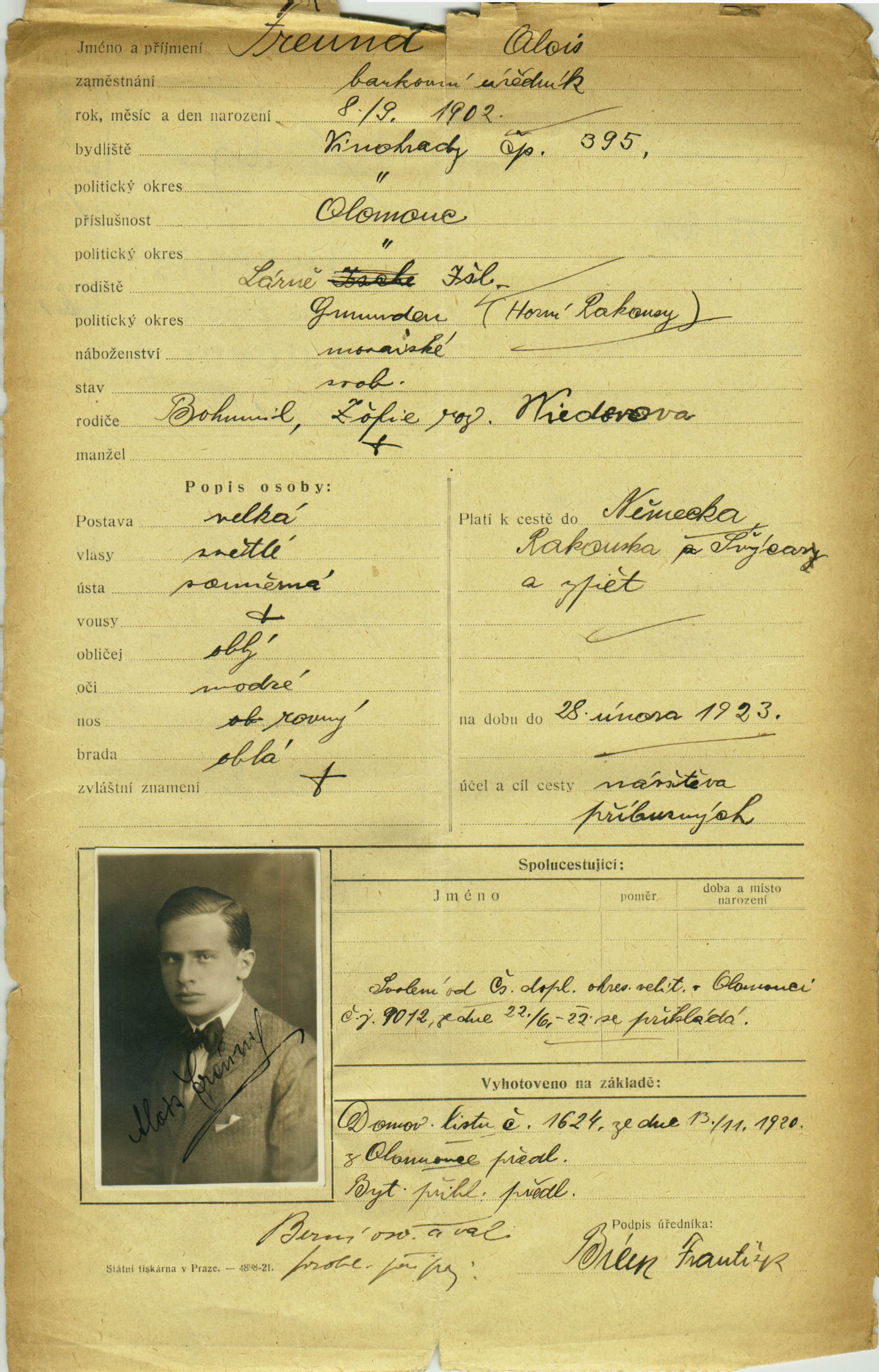 Freund Alois: Passport application