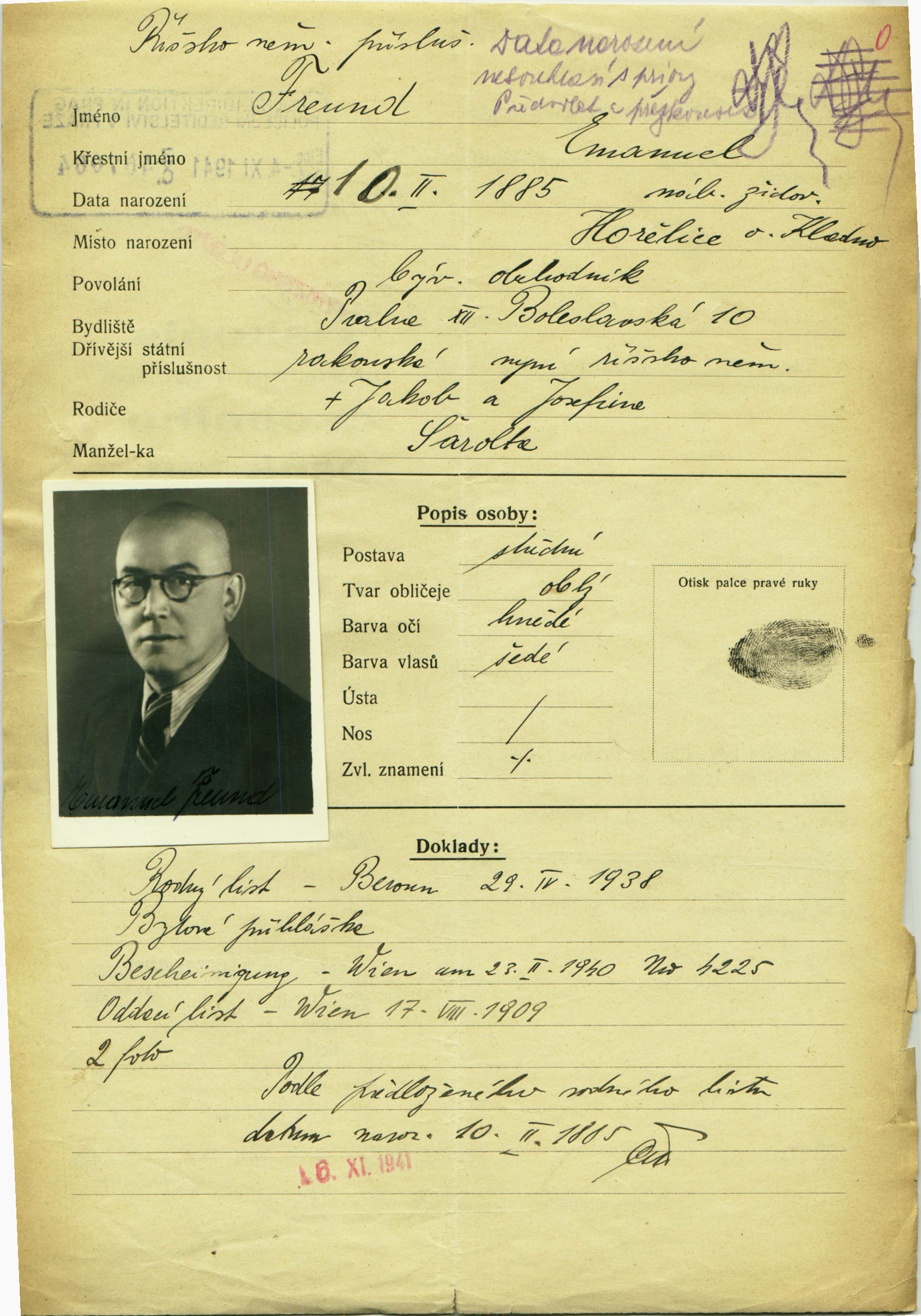 National archives Prague > Police Directorate Prague > 1941-1950 > F > Freund Emanuel
