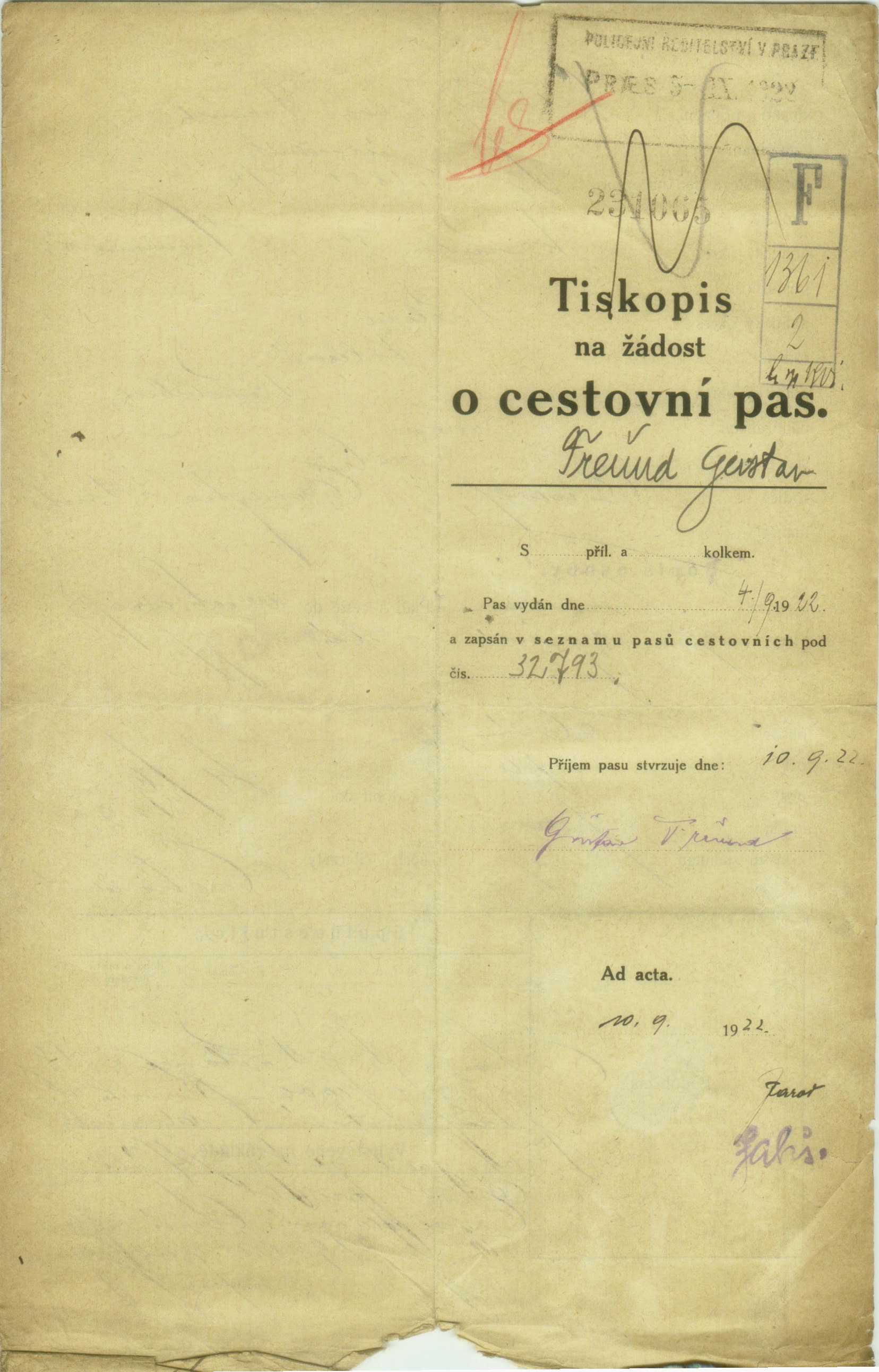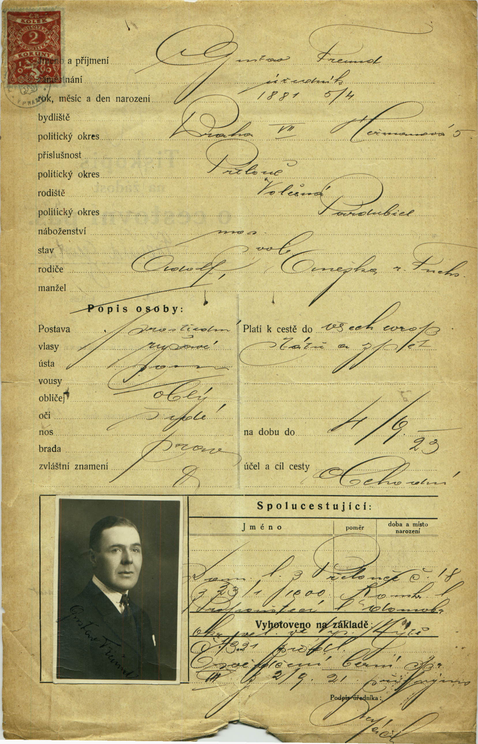 Freund Gustav: Passport application