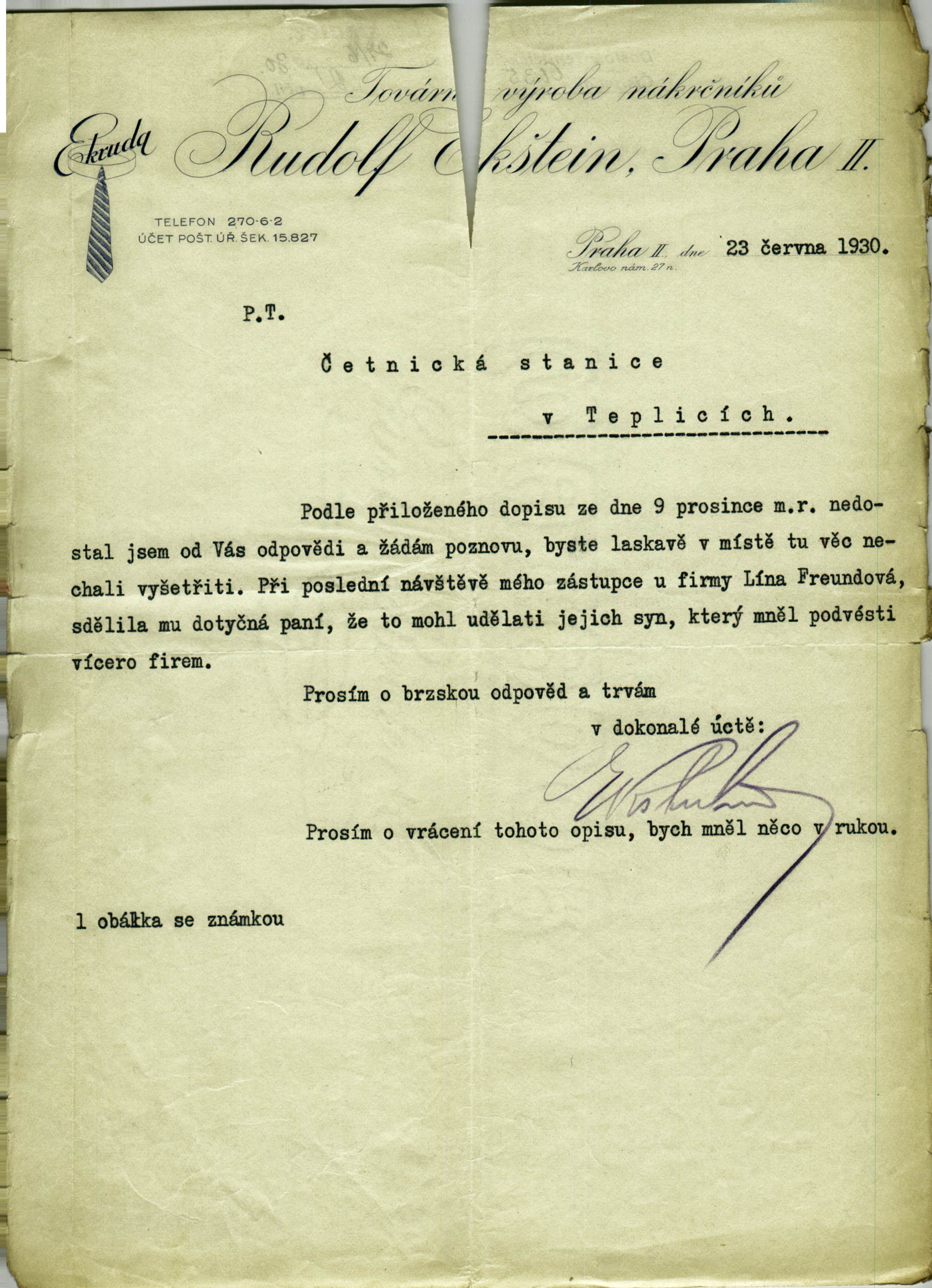 Freund Hans: Trestní oznámení