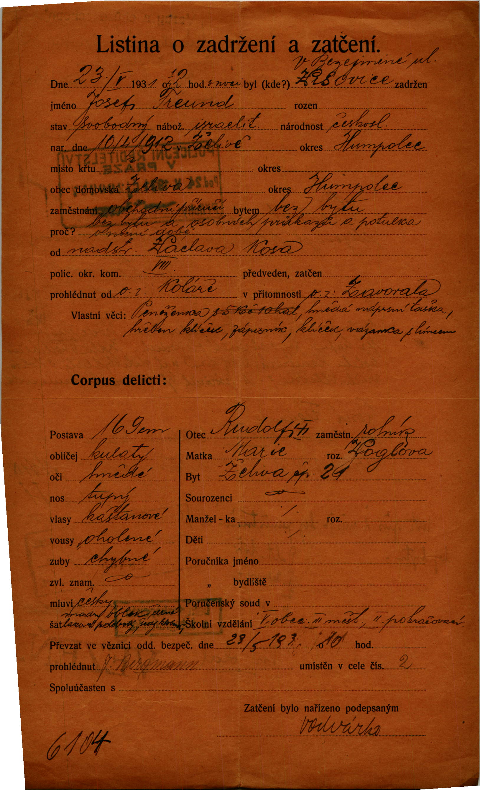 National archives Prague > Police Directorate Prague > 1941-1950 > F > Freund Josef