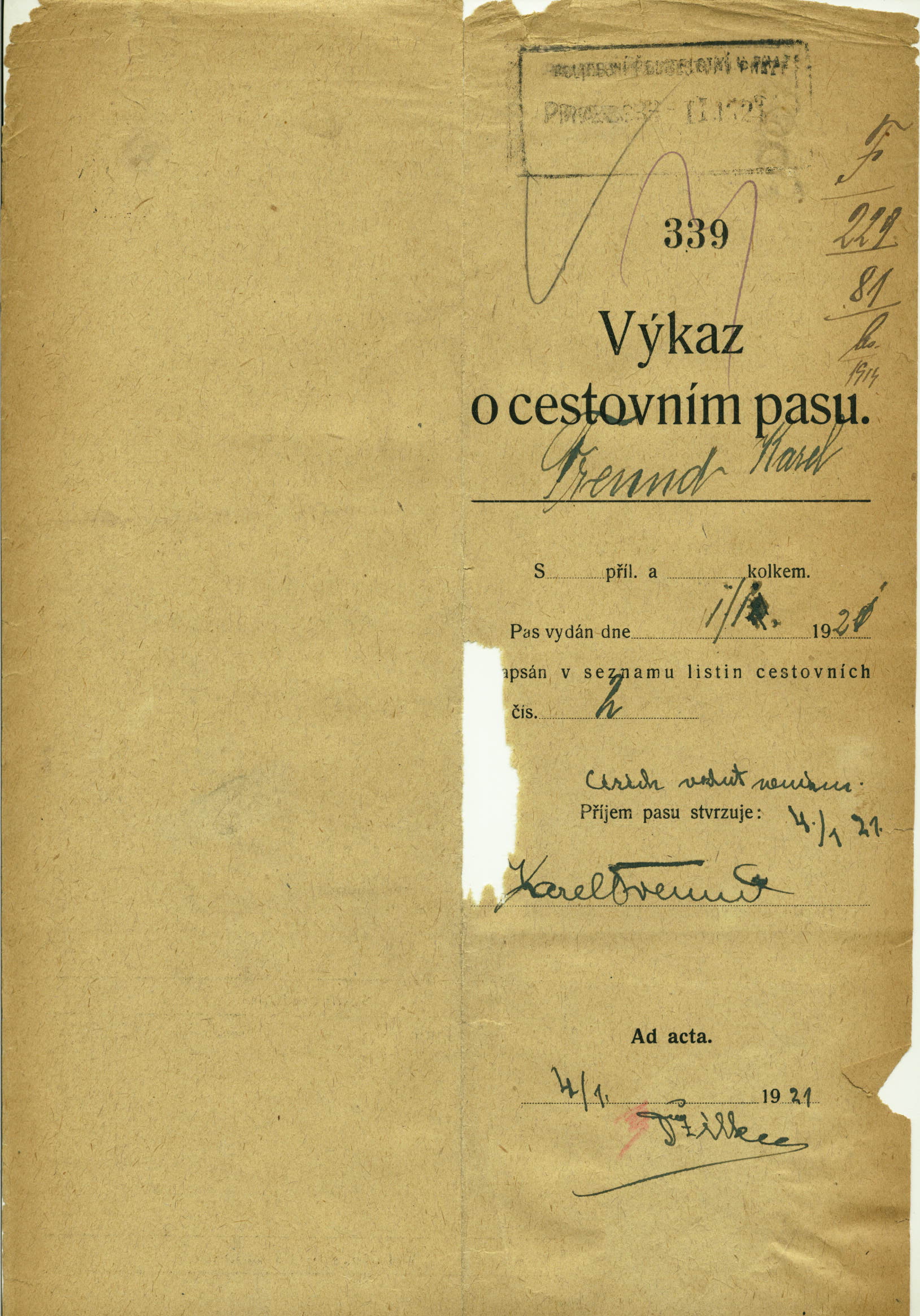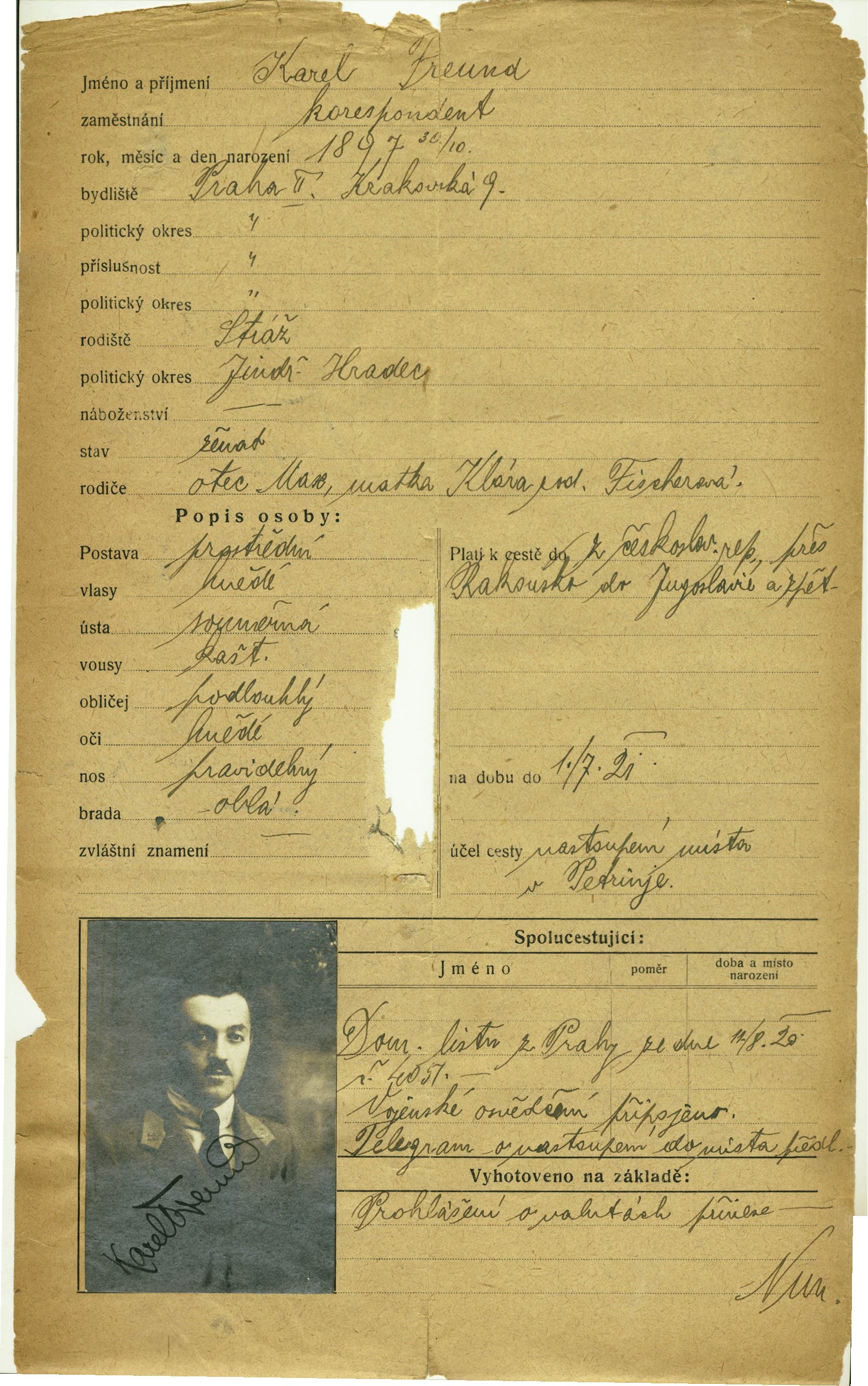 Freund Karl: Passport application