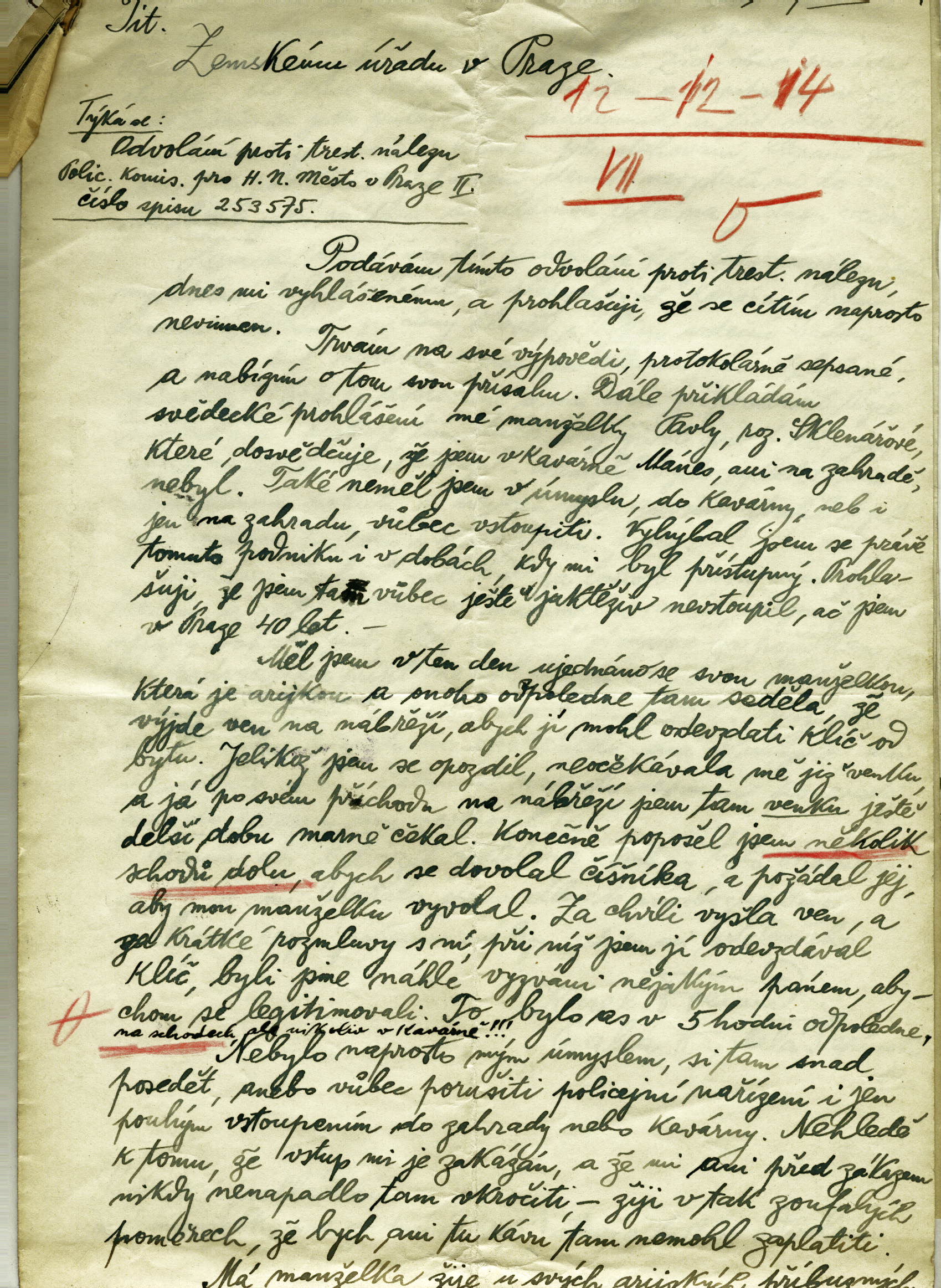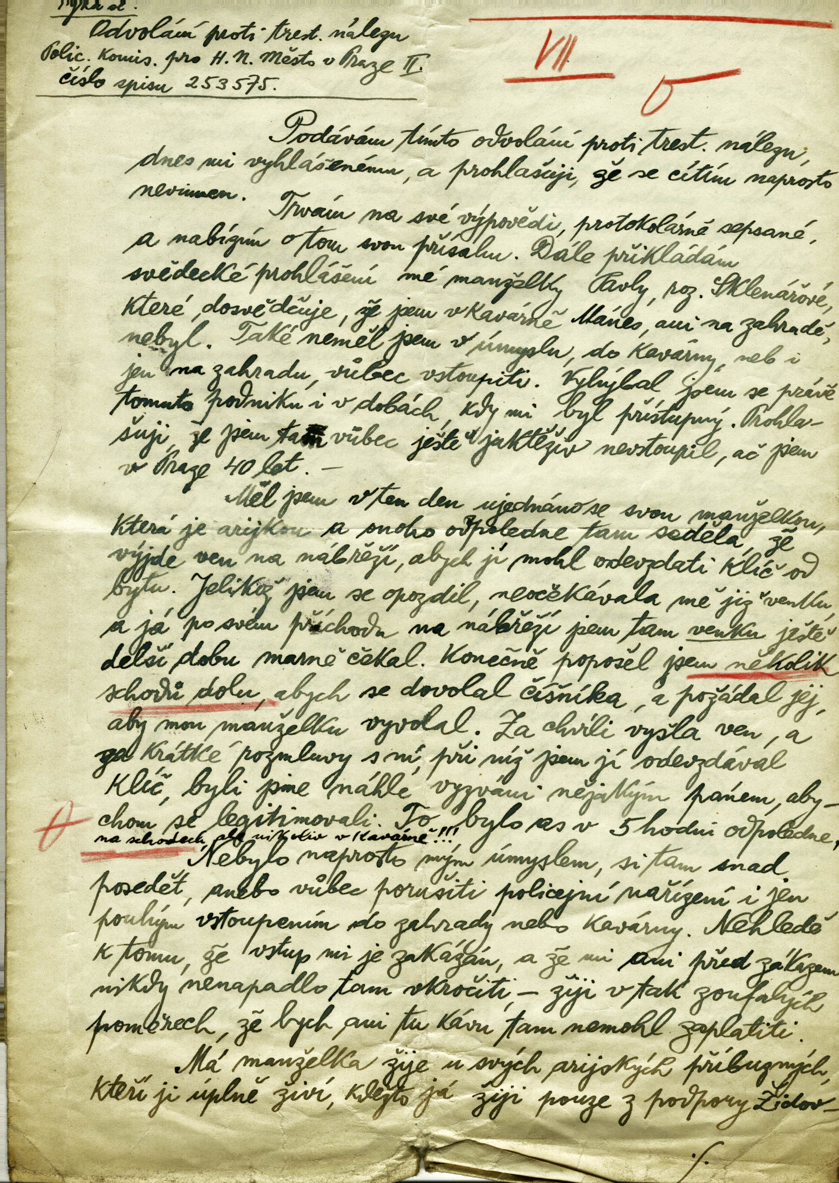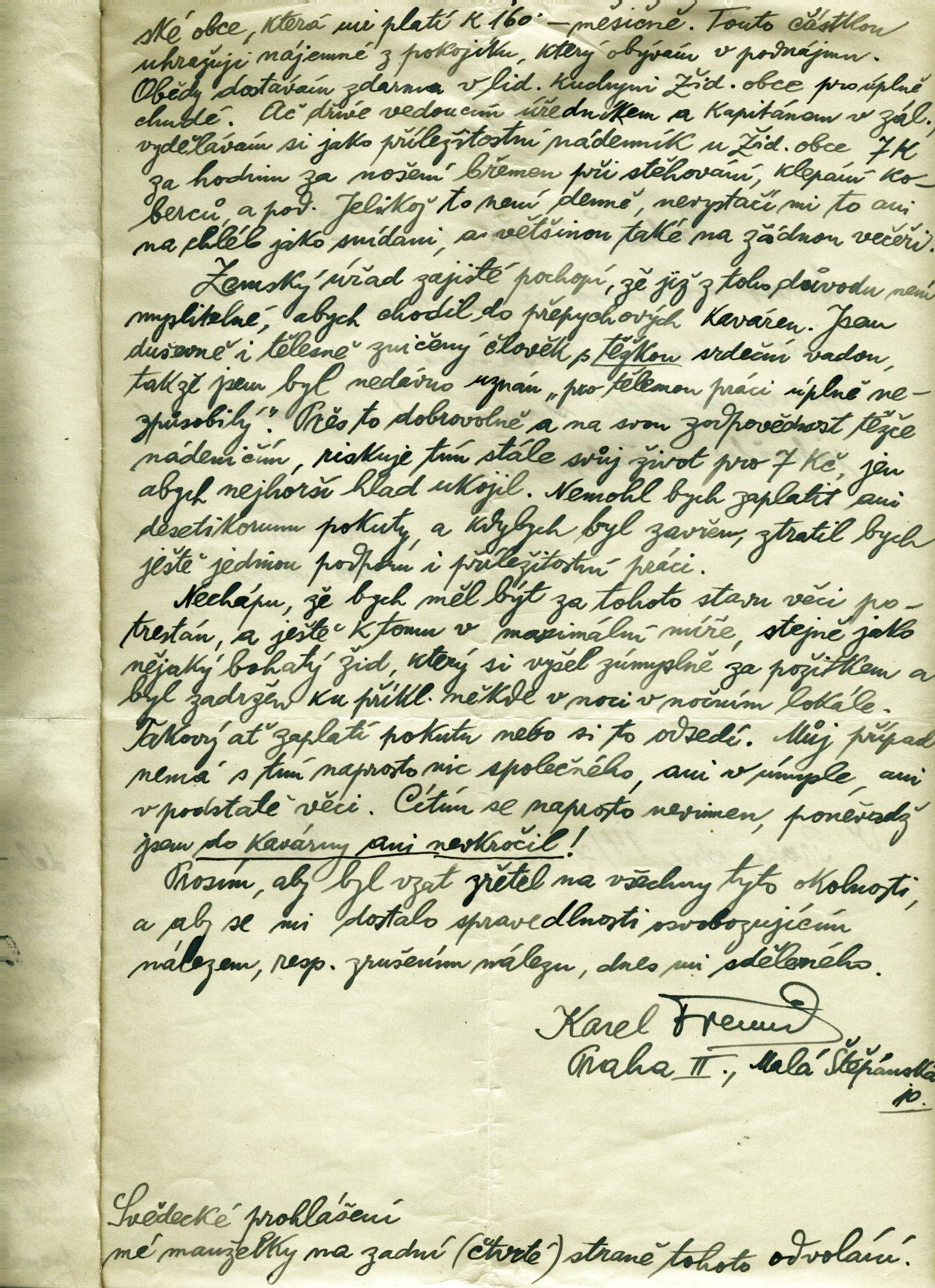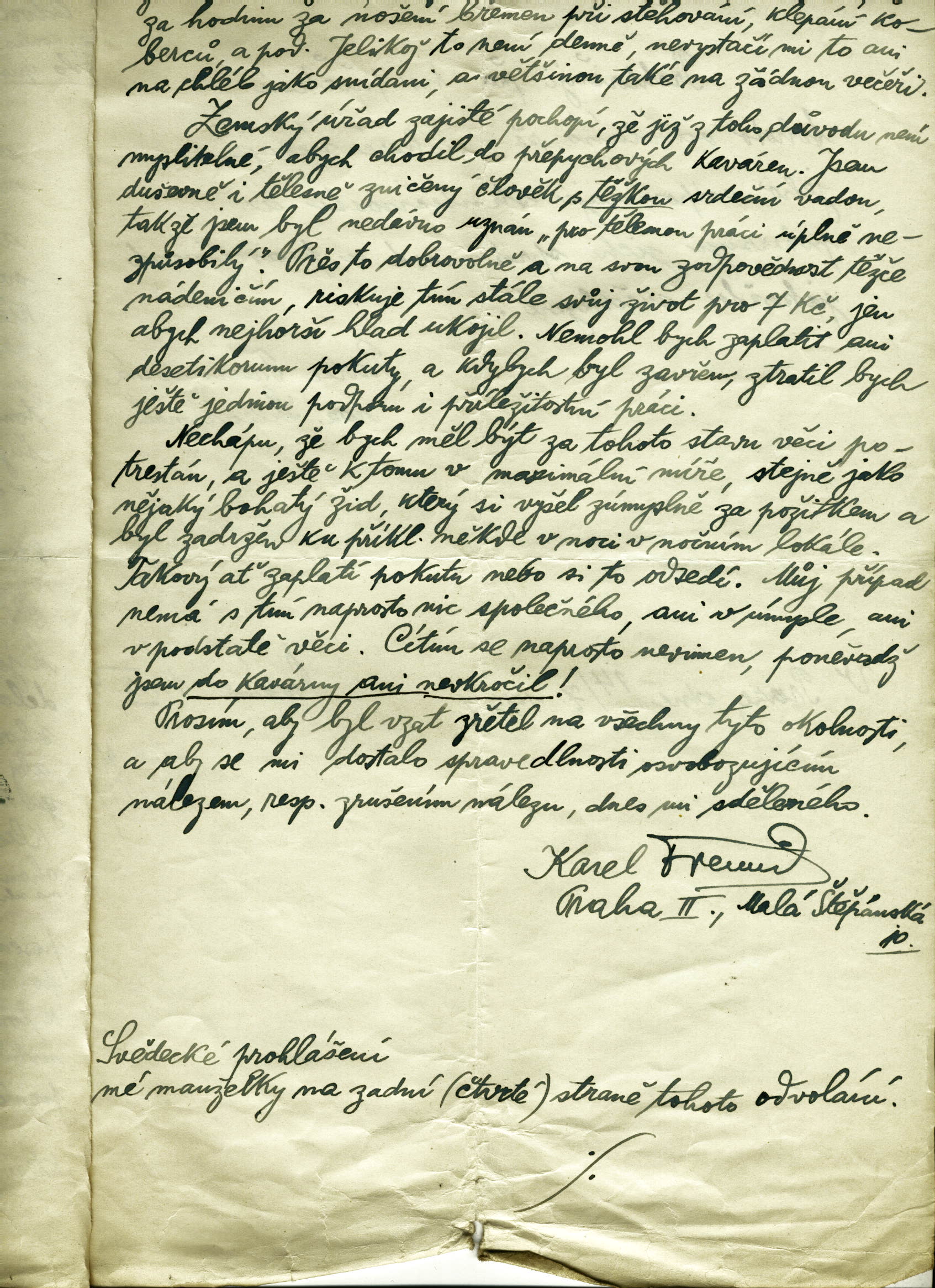 Freund Karl: Odvolání proti trestnímu nálezu