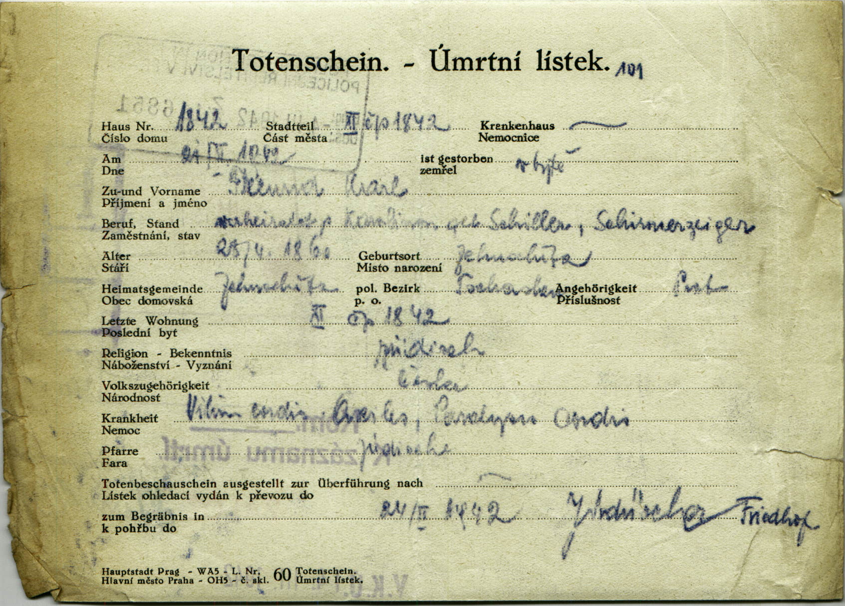This database contains the names and fates of those who were deported from the territory of today’s Czech Republic, be it their homeland or may they have been deported to the Theresienstadt ghetto before from different european countries. Further, it contains basic information on those men, women and children, most of whom were Roma or Sinti, who died as prisoners of the so-called „Gypsy camp I“ Lety u Písku.
