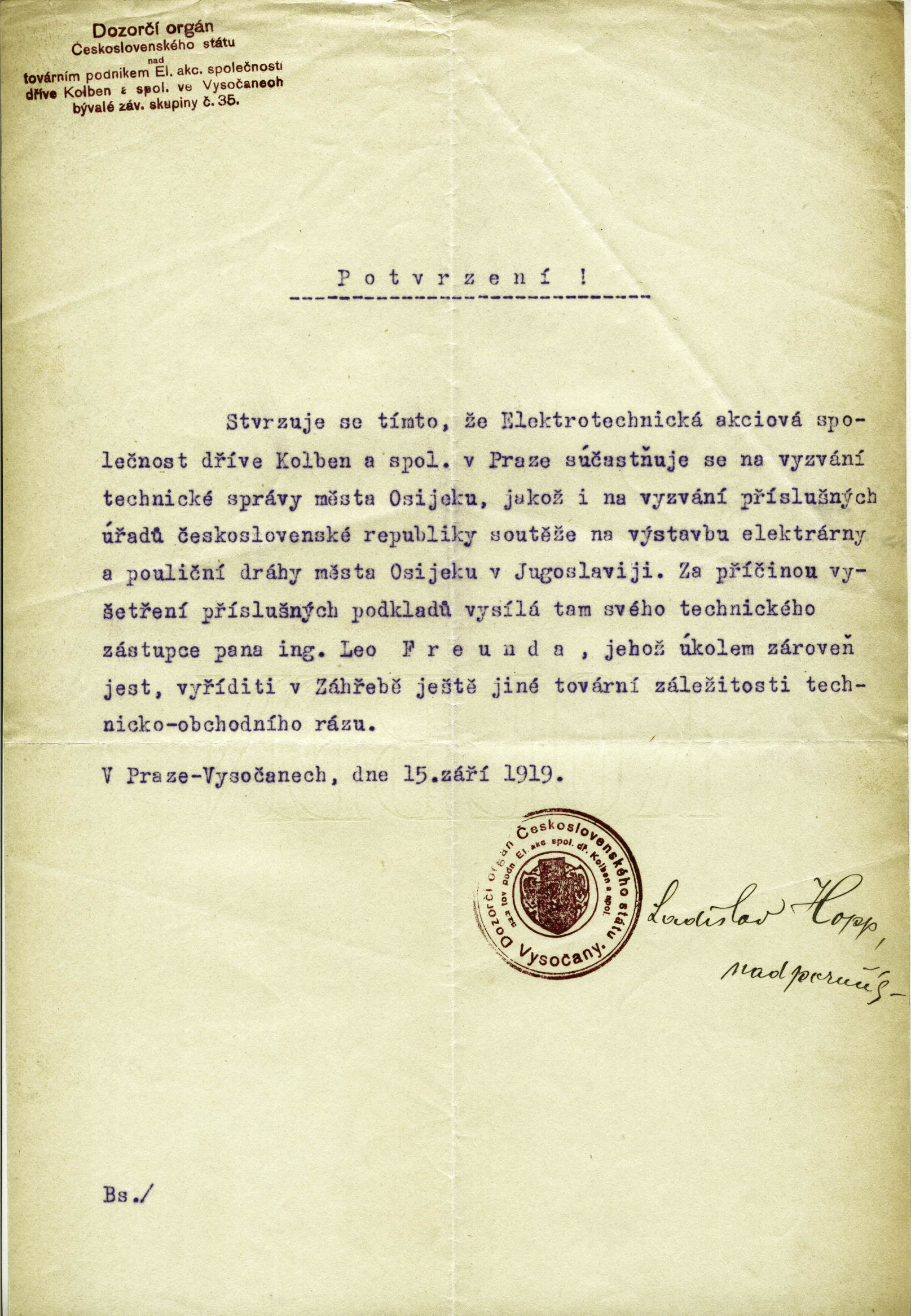 Freund Leo: Potvrzení o vyslání zaměstnance do zahraničí