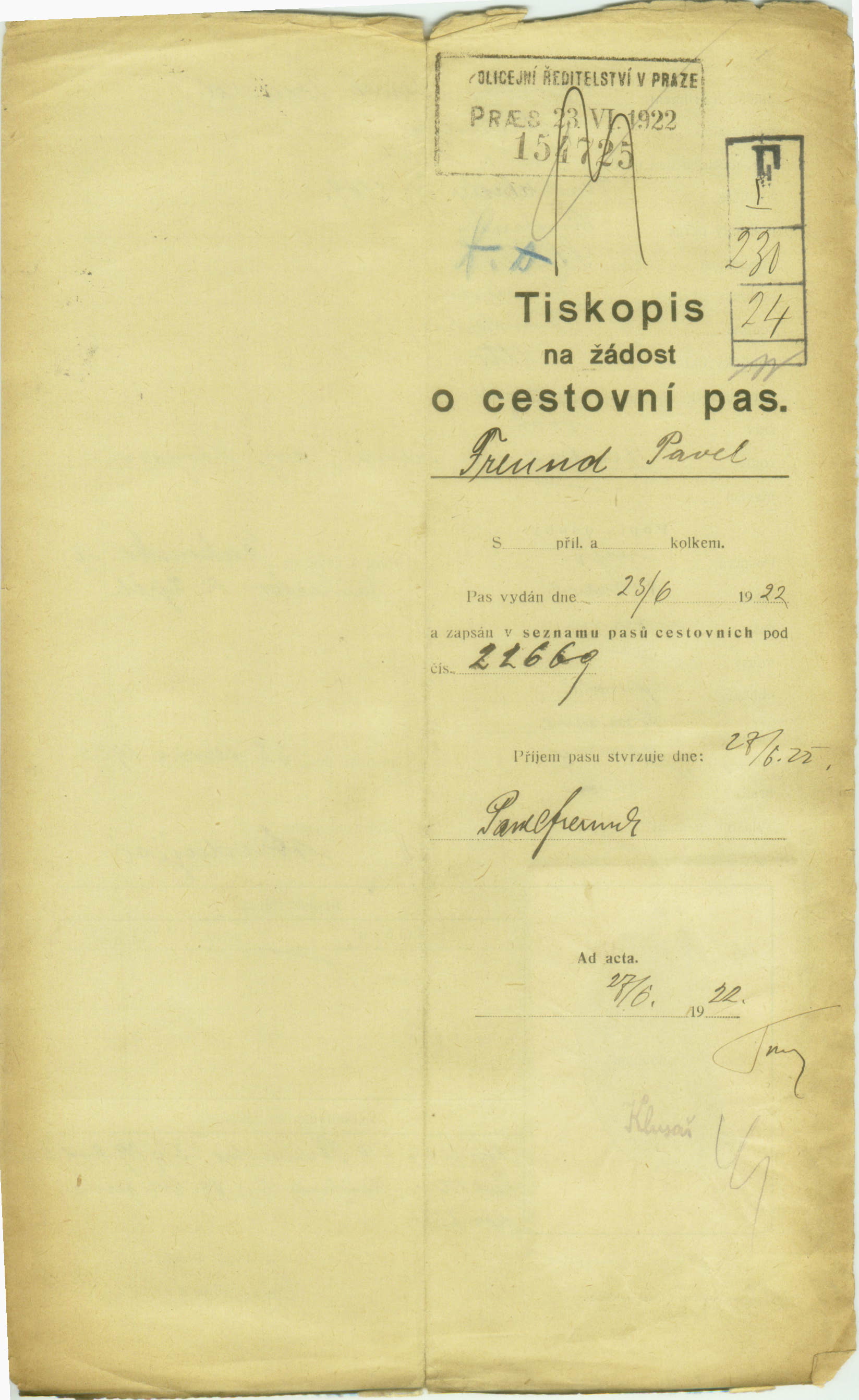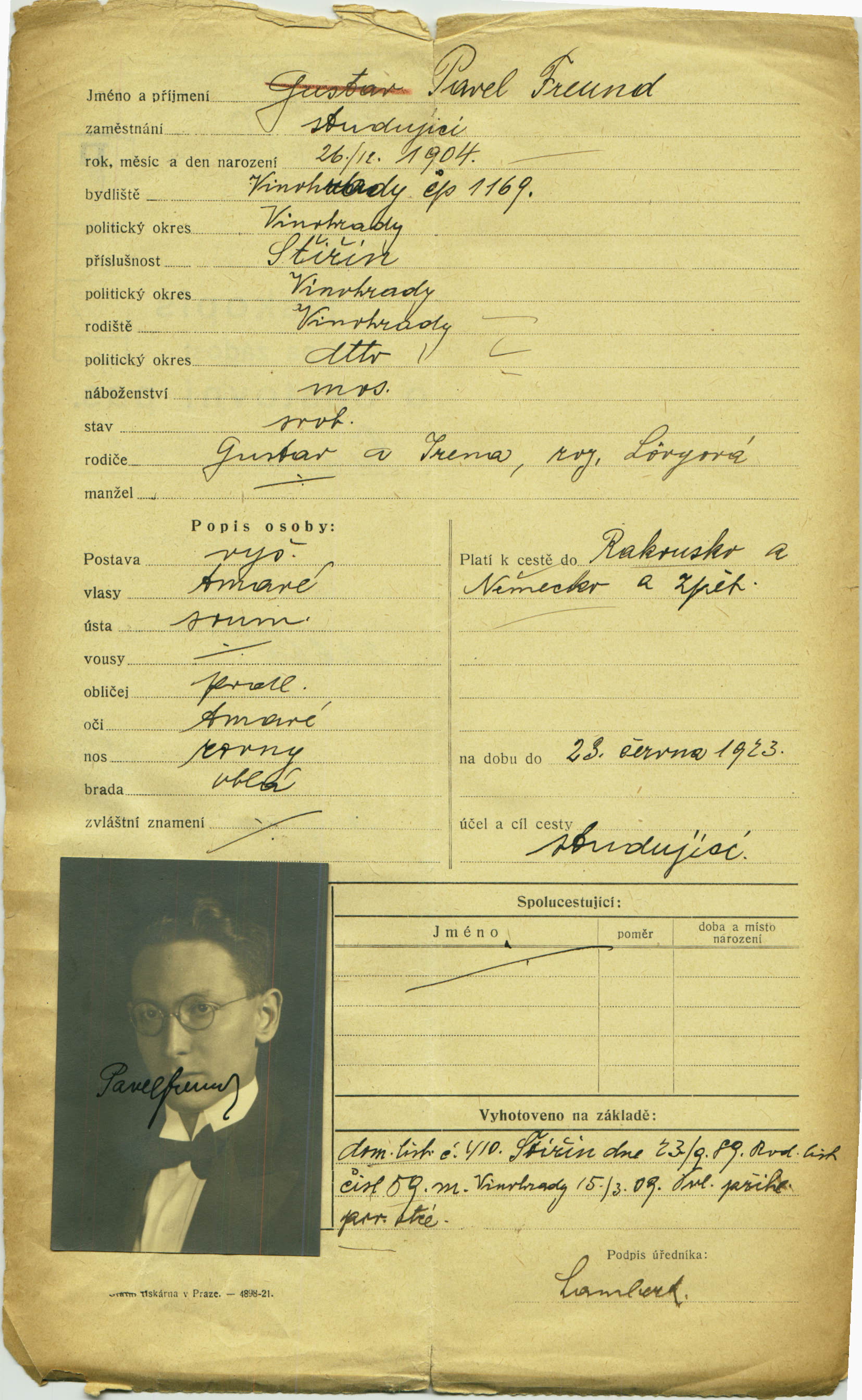 Freund Pavel: Passport application