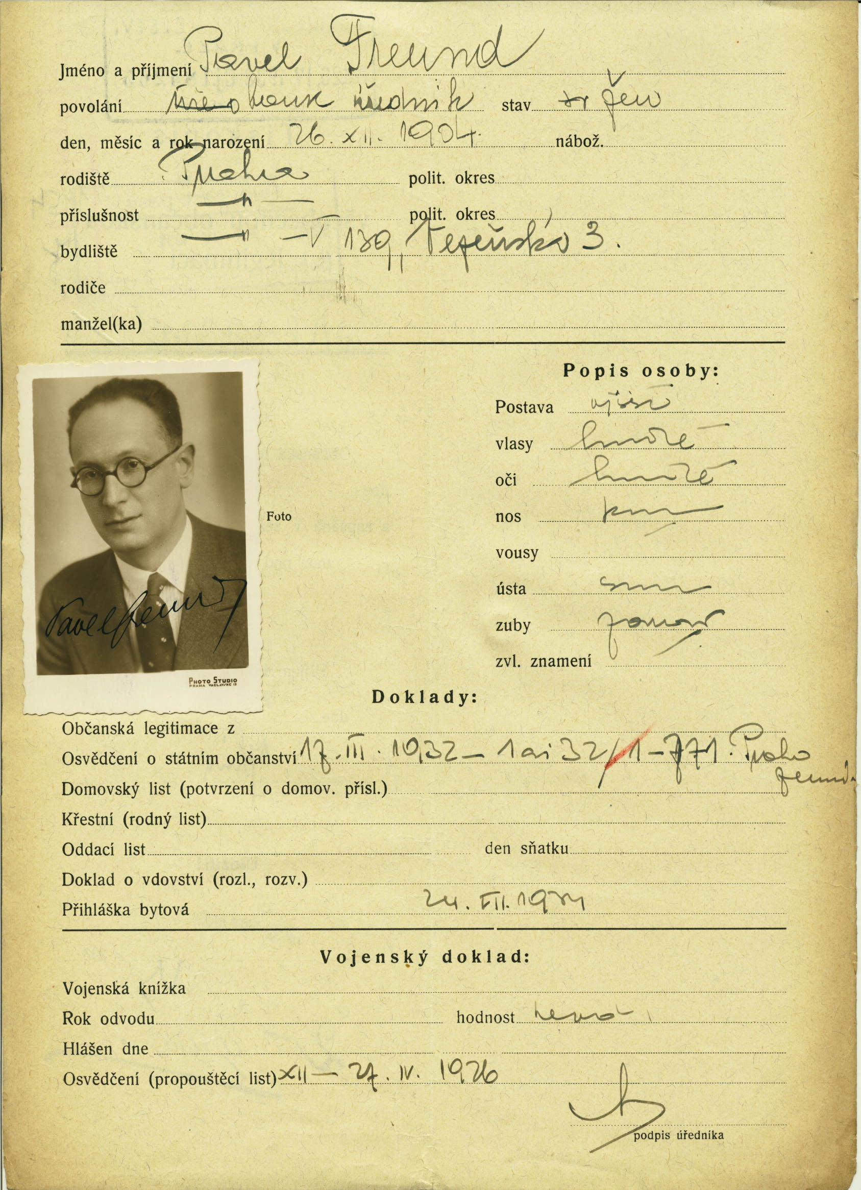 National archives Prague > Police Directorate Prague > 1941-1950 > F > Freund Pavel
