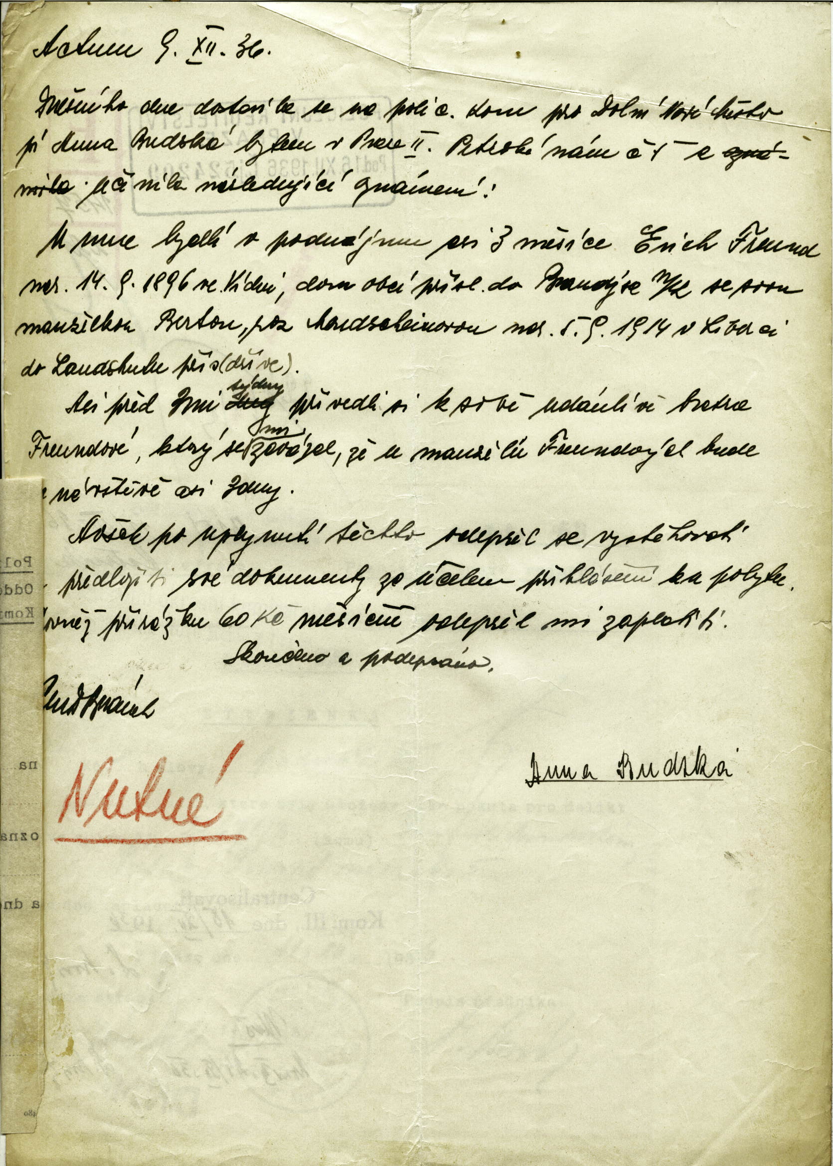 Freund Erich: Trestní oznámení