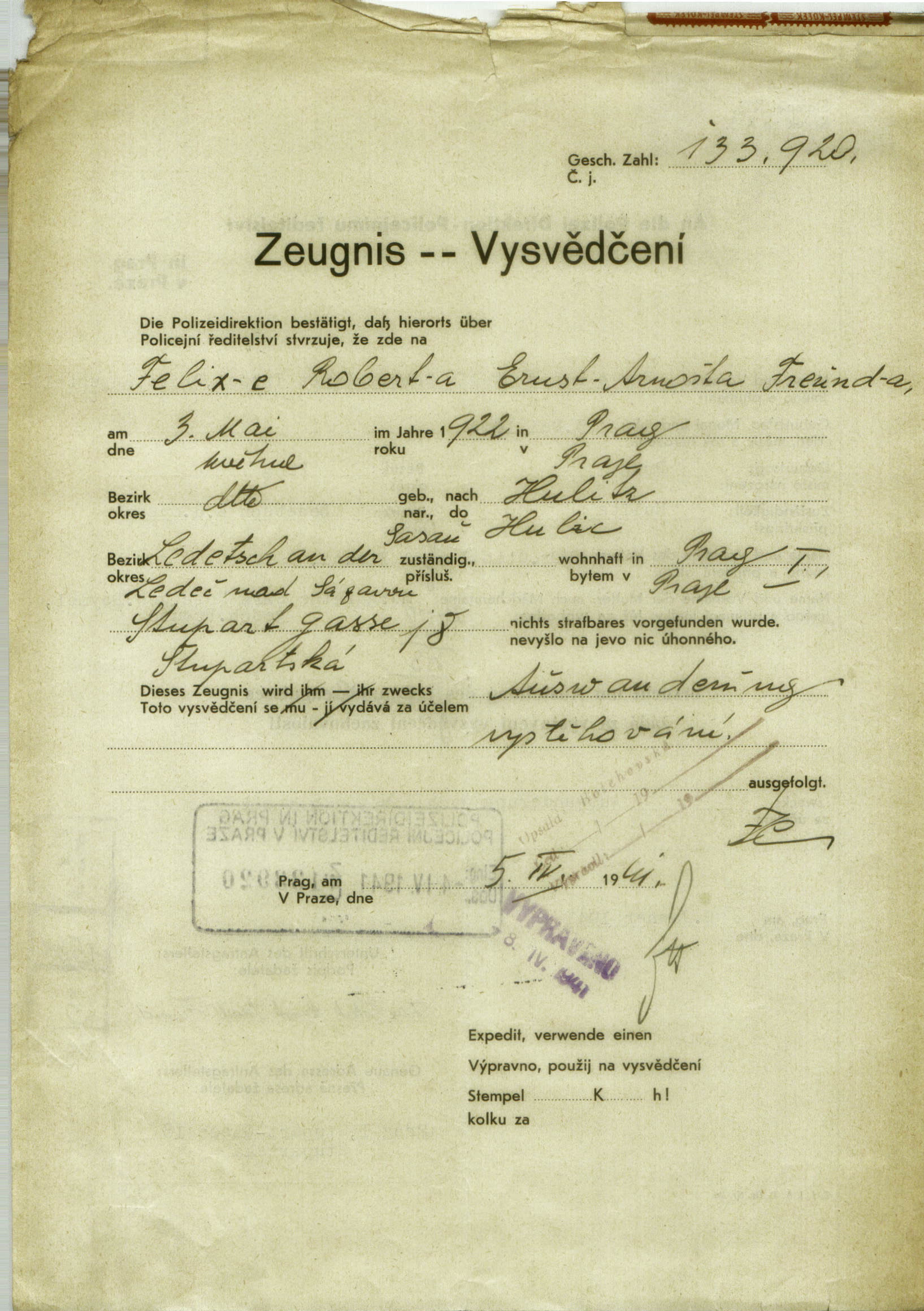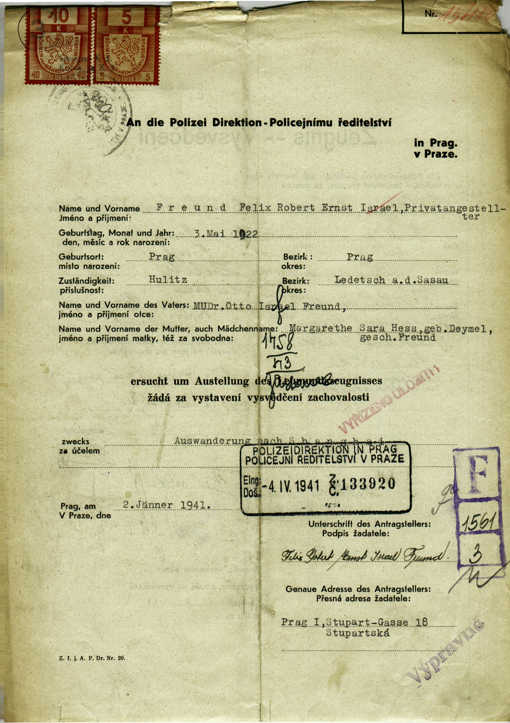 National archives Prague > Police Directorate Prague > 1941-1950 > F > Freund Felix