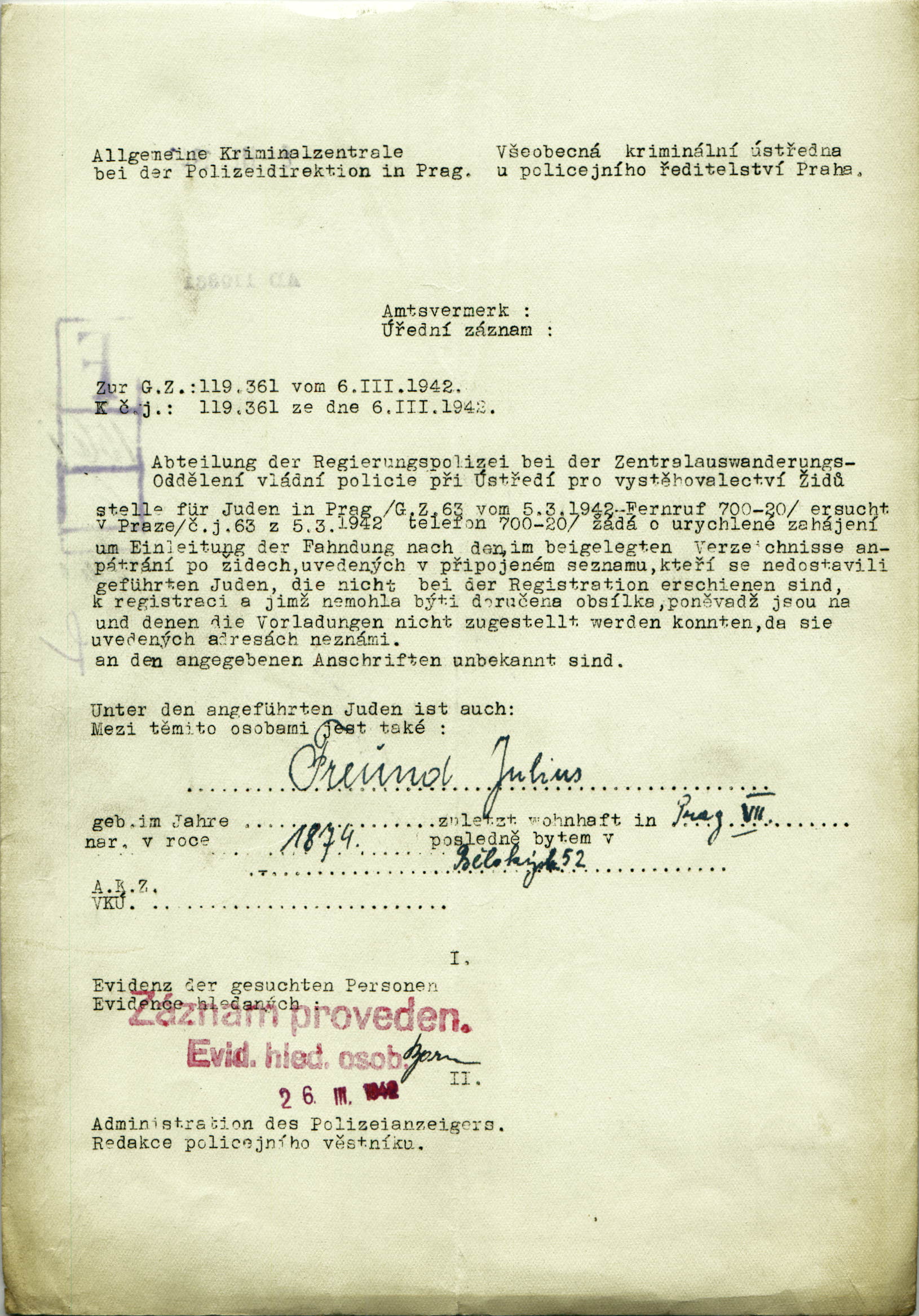 This database contains the names and fates of those who were deported from the territory of today’s Czech Republic, be it their homeland or may they have been deported to the Theresienstadt ghetto before from different european countries. Further, it contains basic information on those men, women and children, most of whom were Roma or Sinti, who died as prisoners of the so-called „Gypsy camp I“ Lety u Písku.