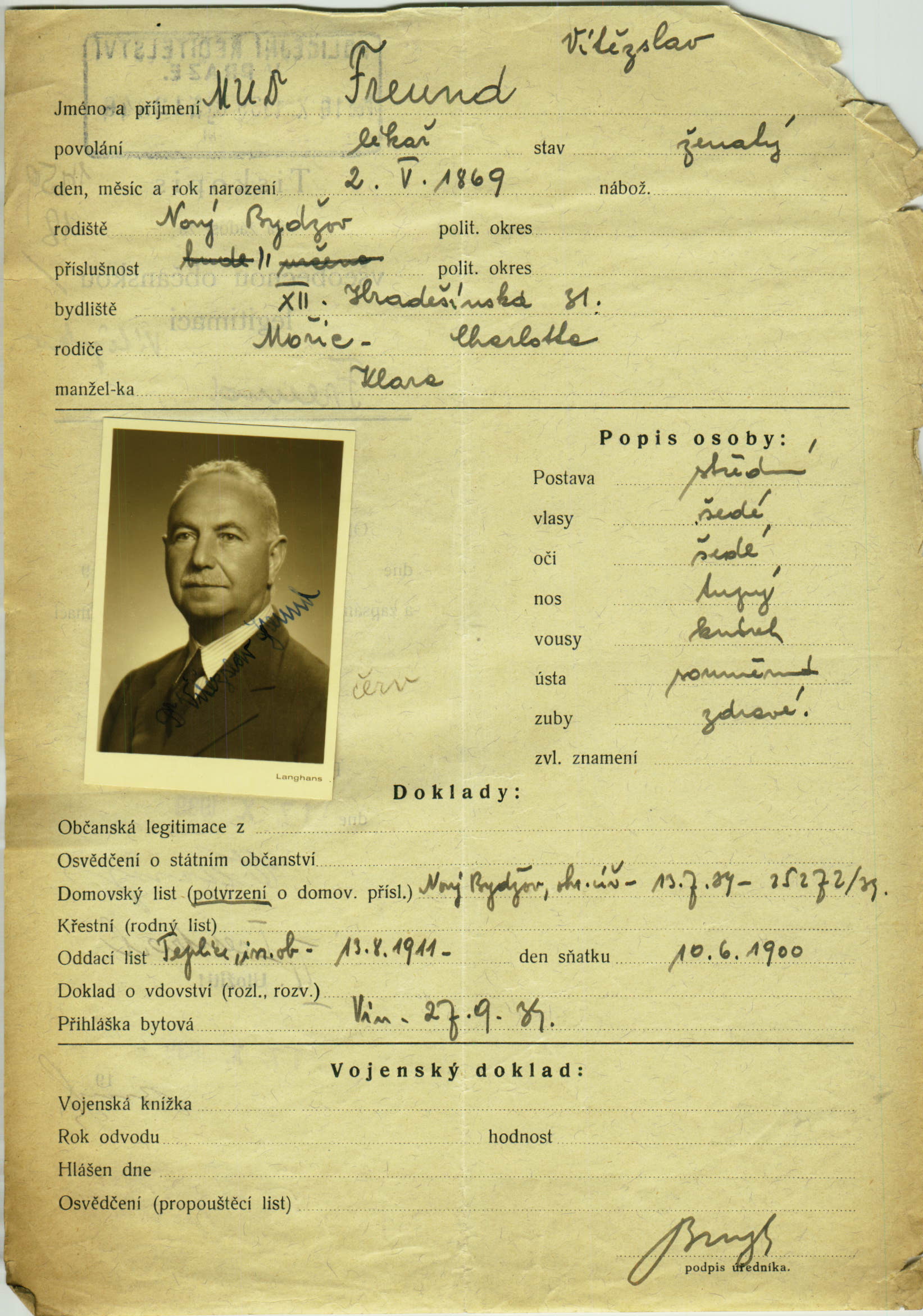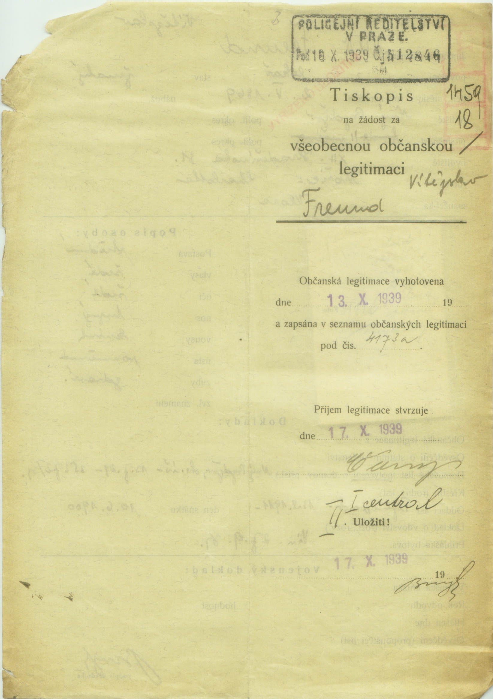 Freund Siegfried: Identity card application