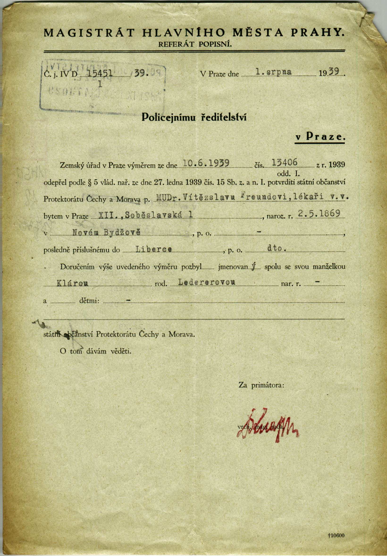 National archives Prague > Police Directorate Prague > 1941-1950 > F > Freund Siegfried