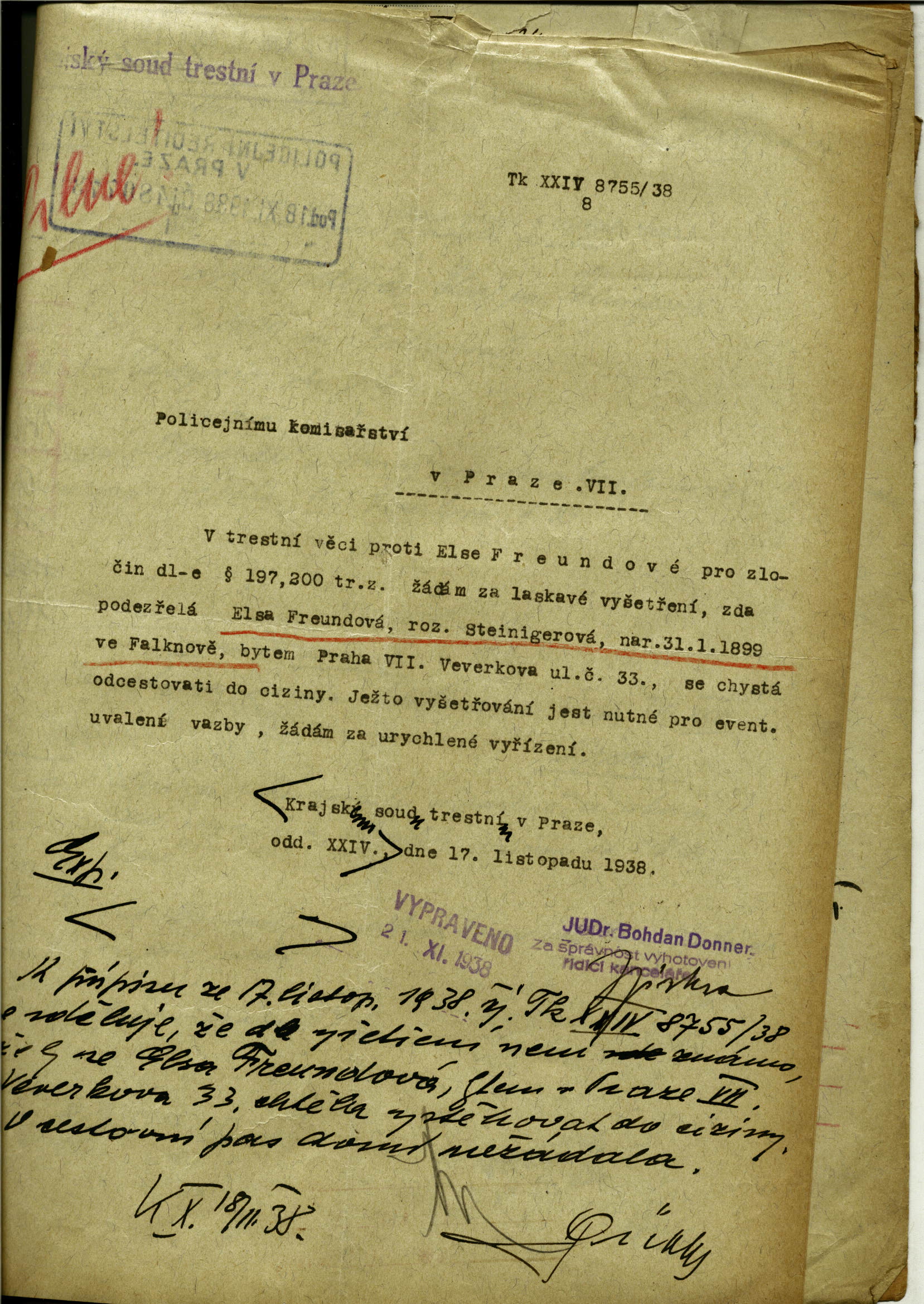 National archives Prague > Police Directorate Prague > 1941-1950 > F > Freundová Eliška