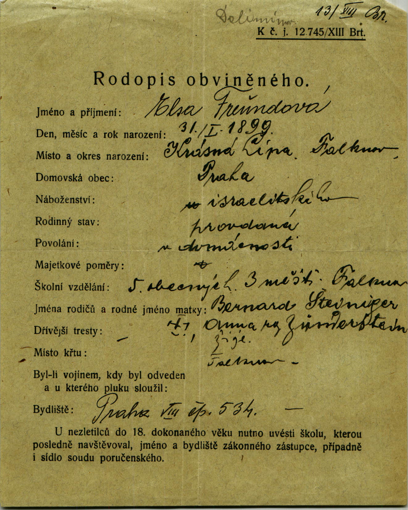 National archives Prague > Police Directorate Prague > 1941-1950 > F > Freundová Eliška