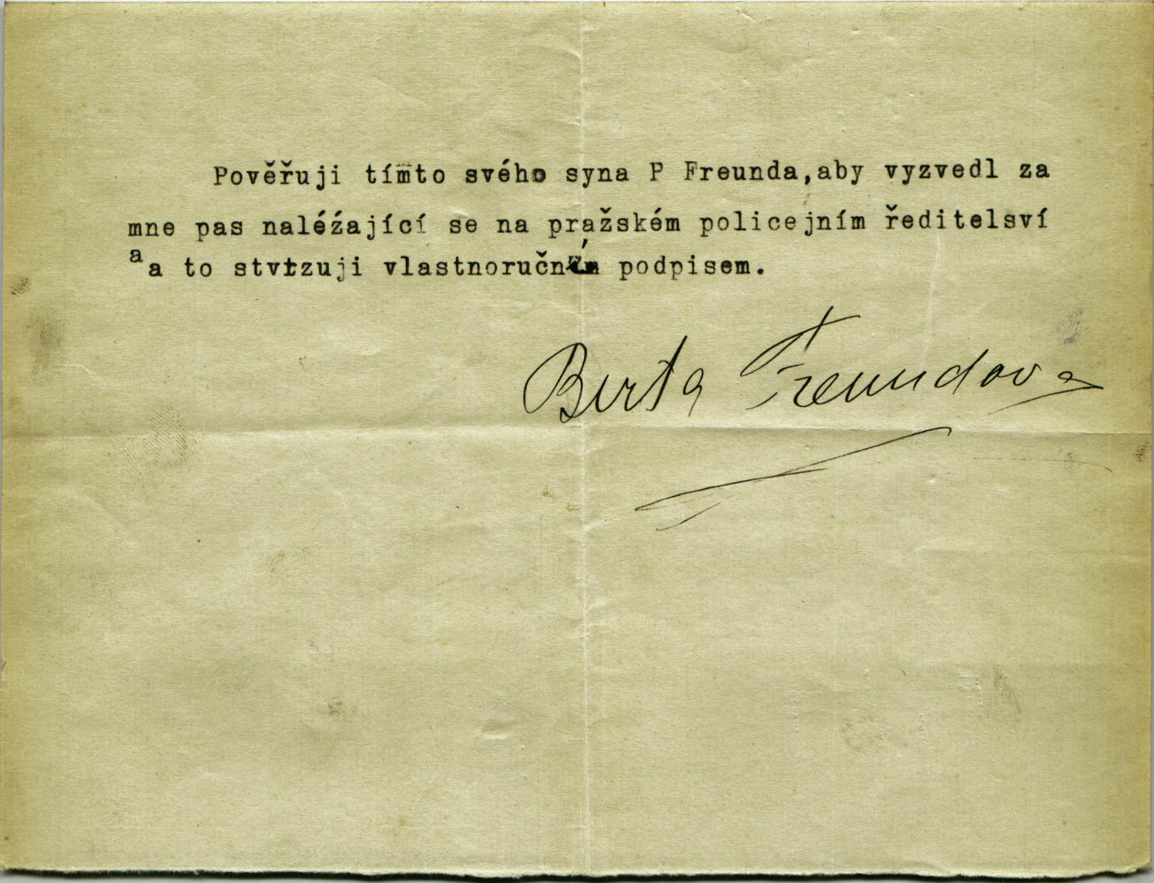 Freundová Berta: Plná moc k vyzvednutí cestovního pasu