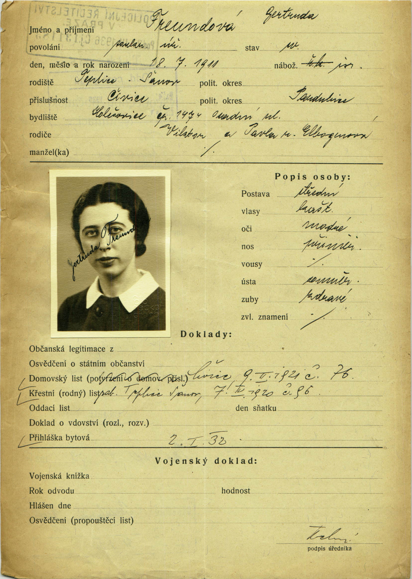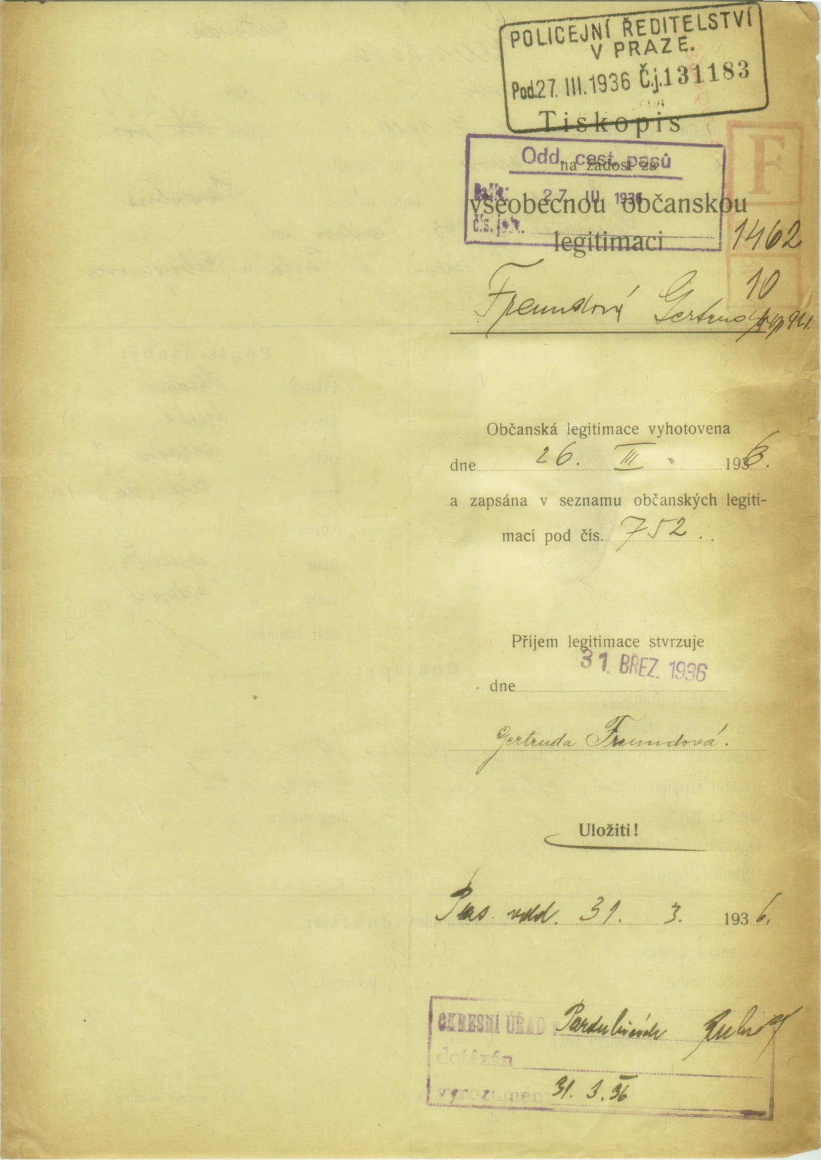 Freundová Gertruda: Identity card application