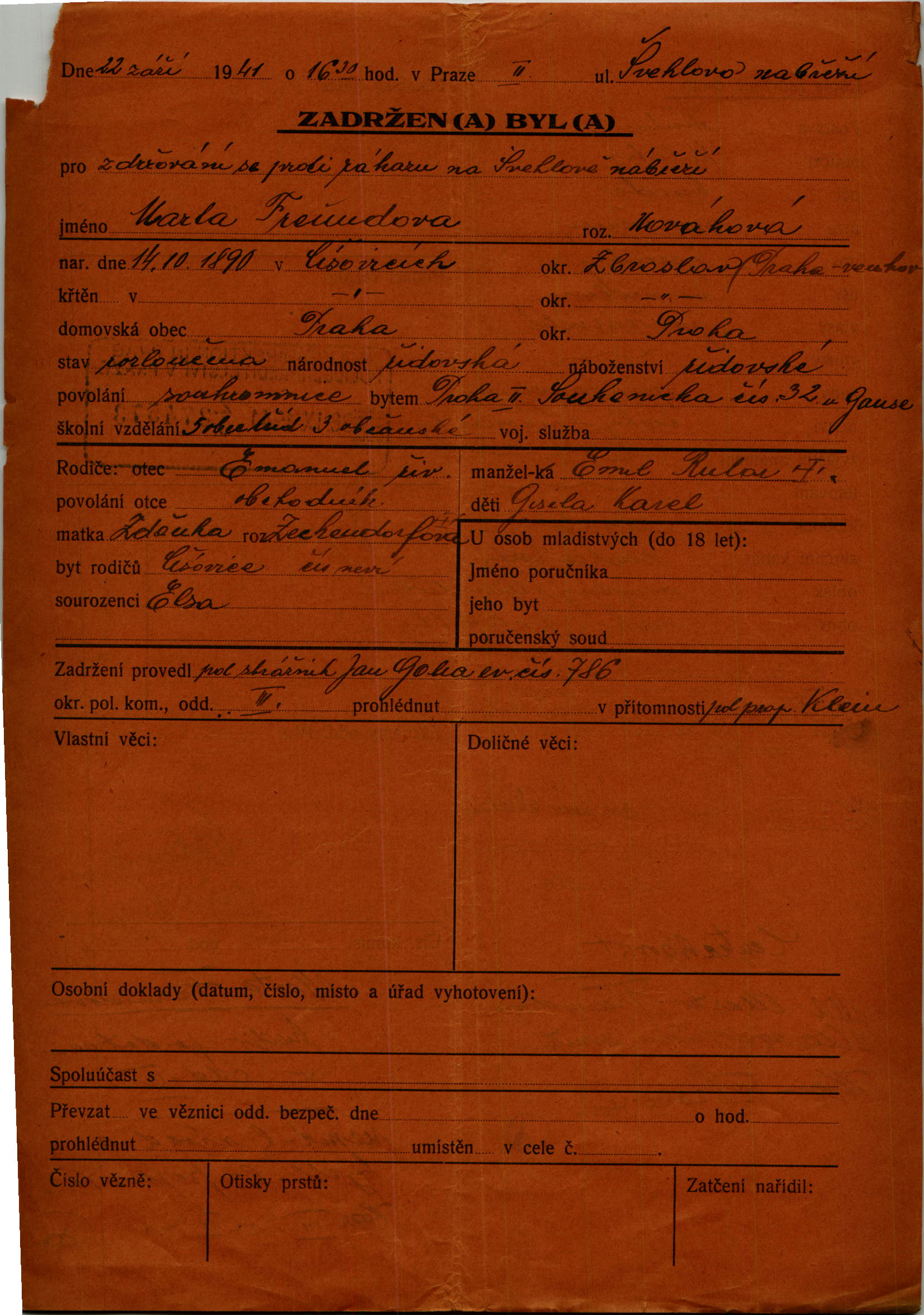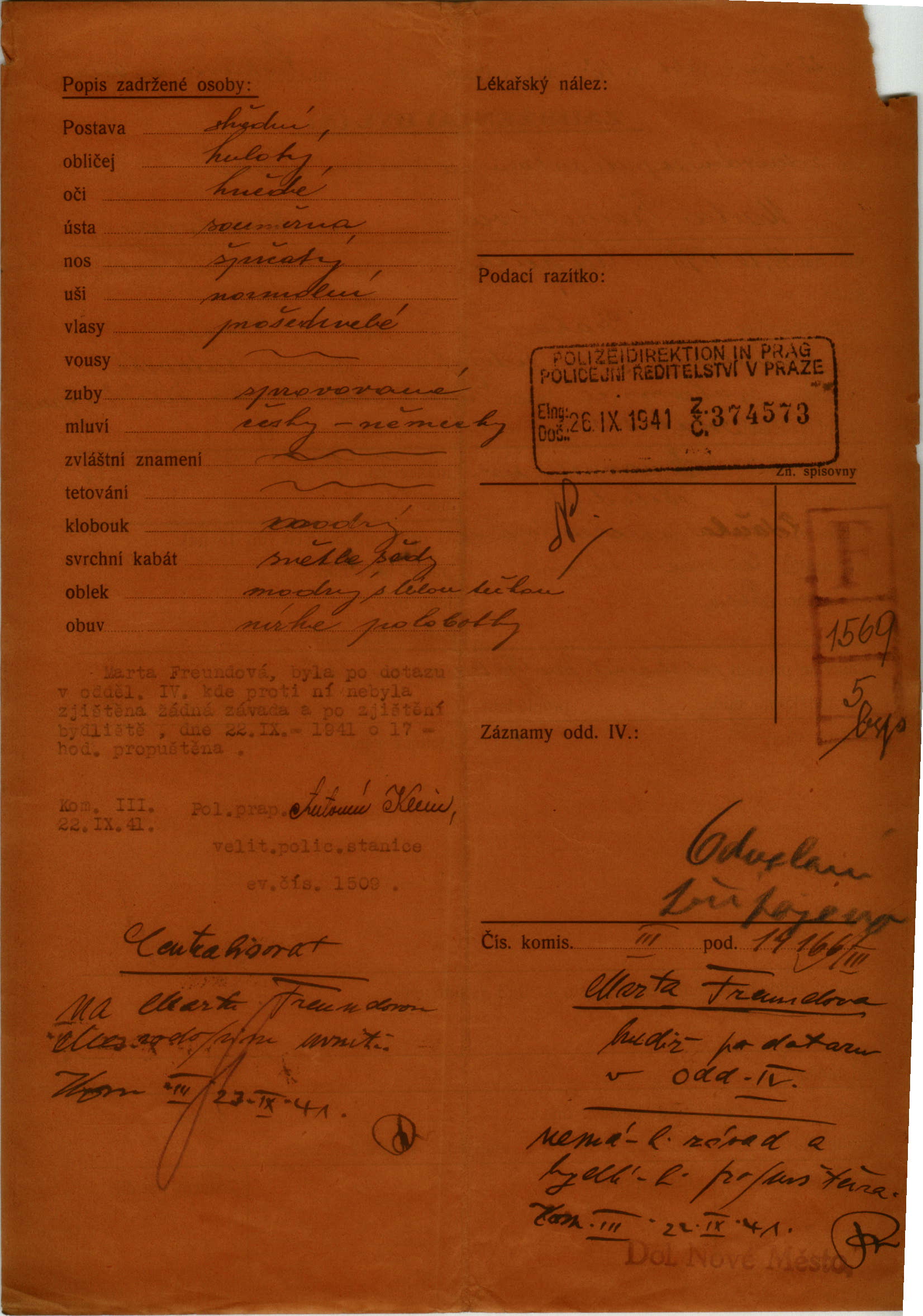 National archives Prague > Police Directorate Prague > 1941-1950 > F > Freundová Marta