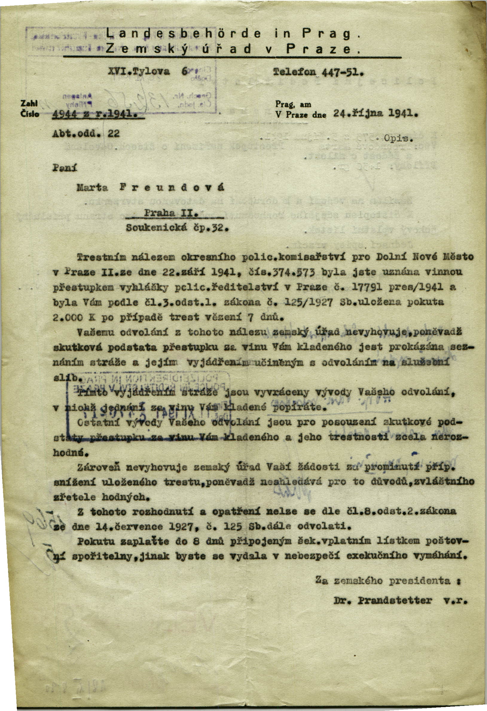 National archives Prague > Police Directorate Prague > 1941-1950 > F > Freundová Marta