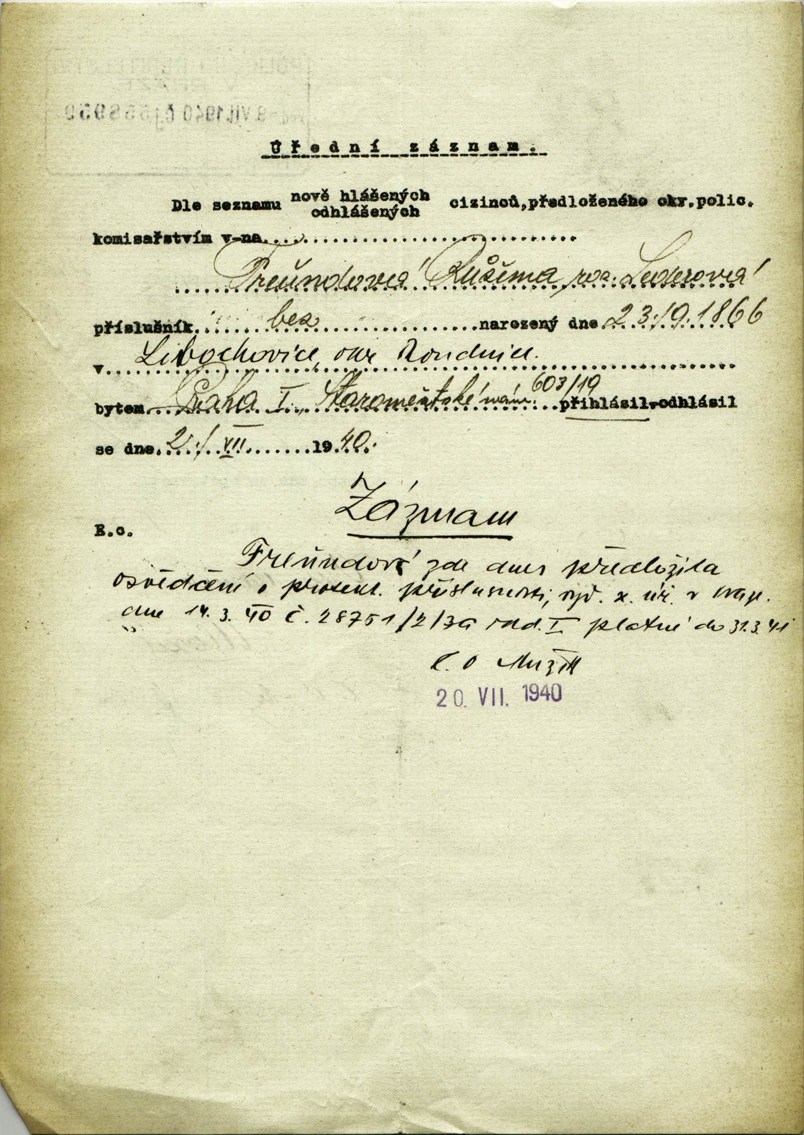 National archives Prague > Police Directorate Prague > 1941-1950 > F > Freundová Růžena