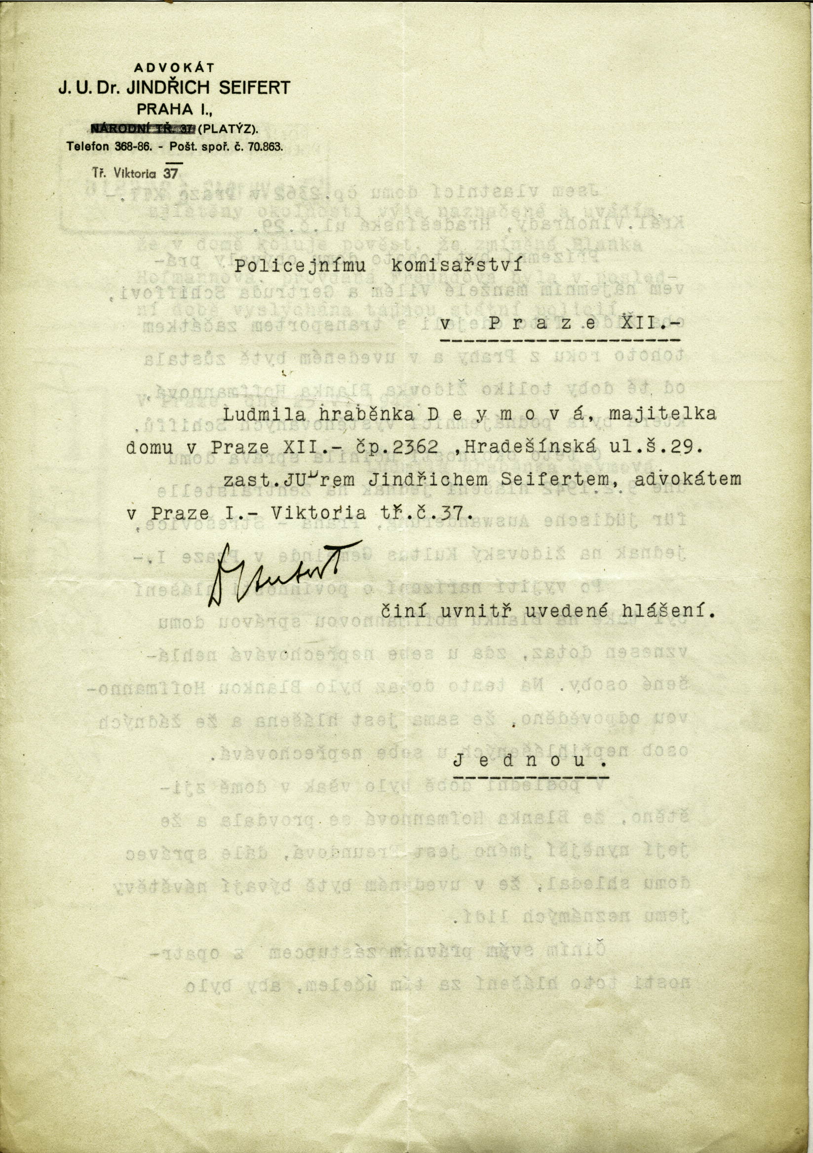 Freundová Blanka: Oznámení Policenímu ředitelství